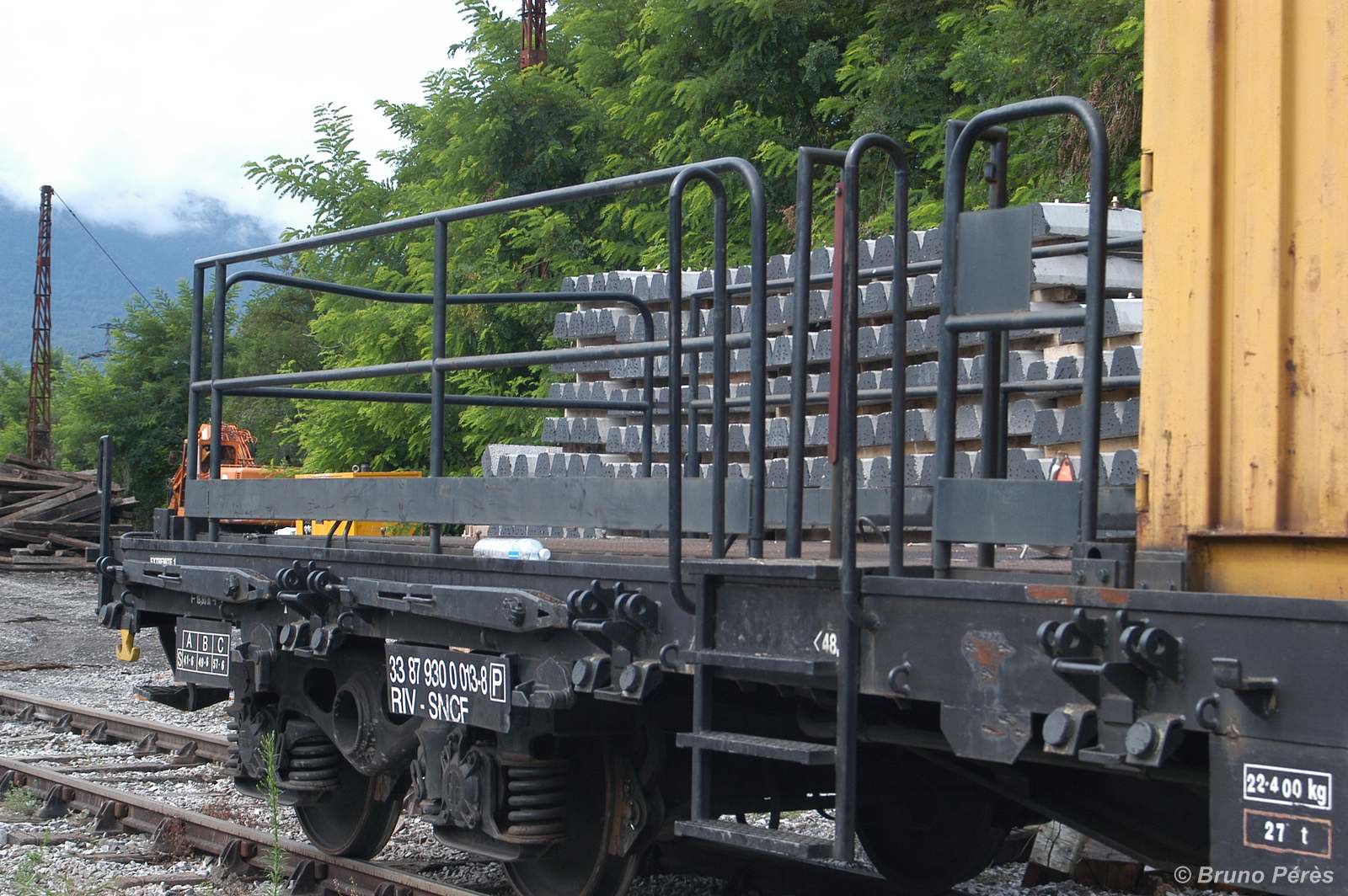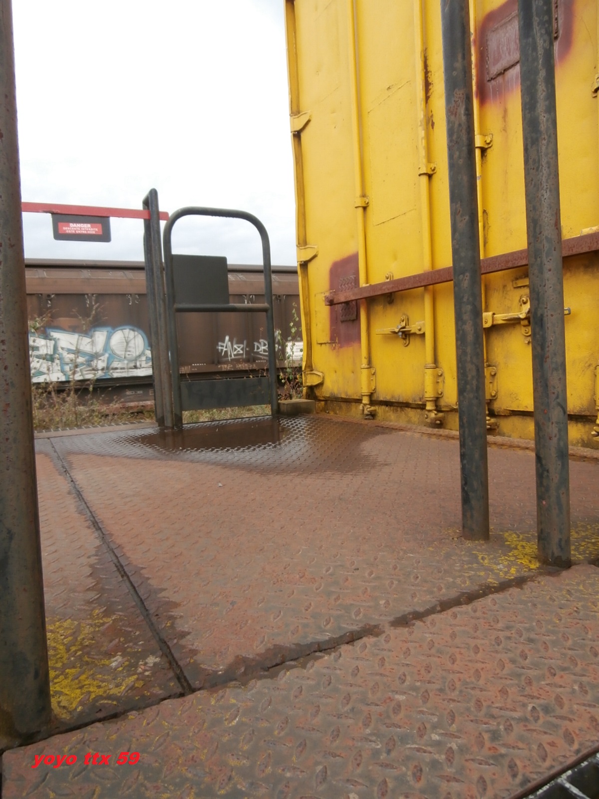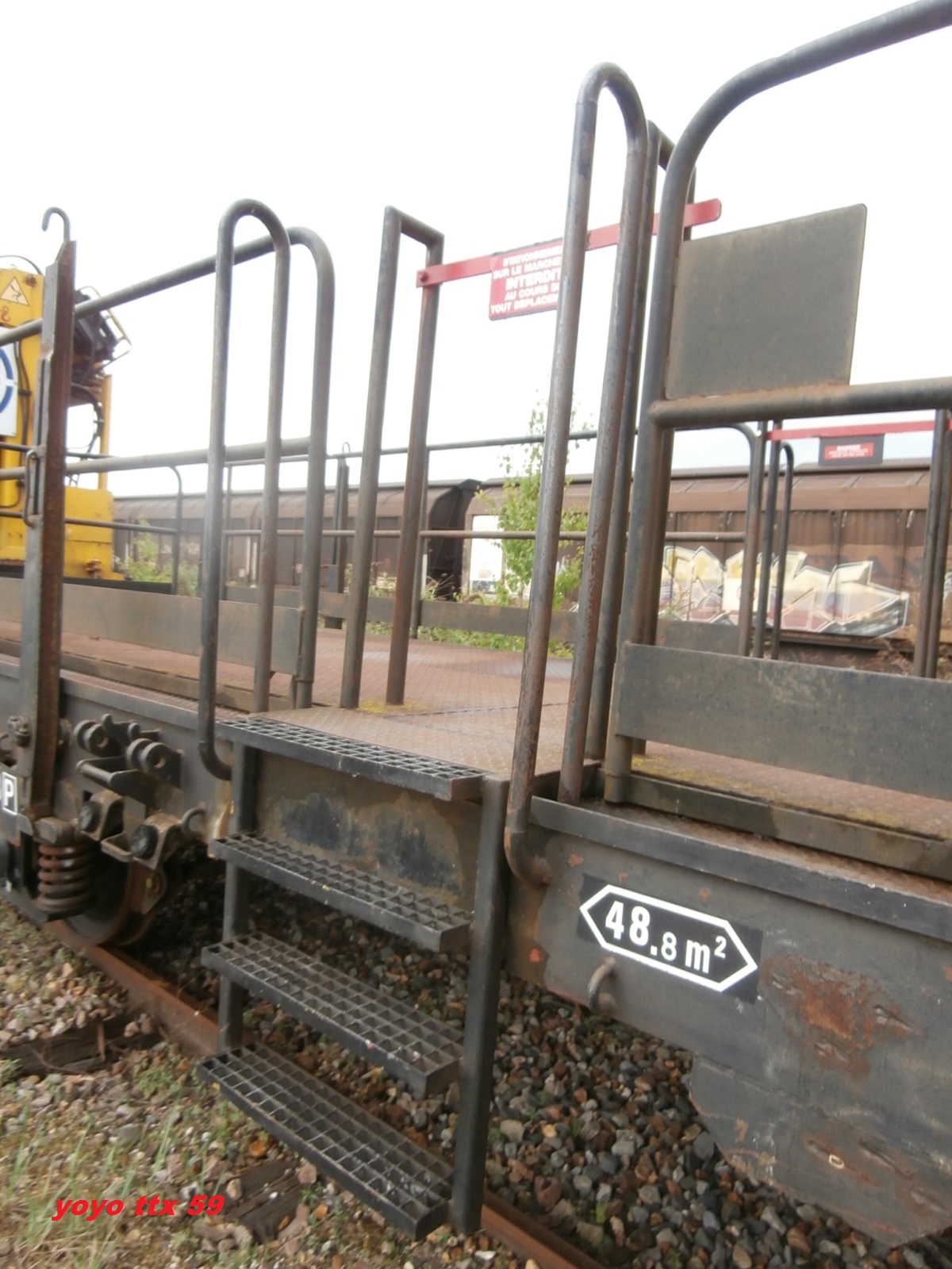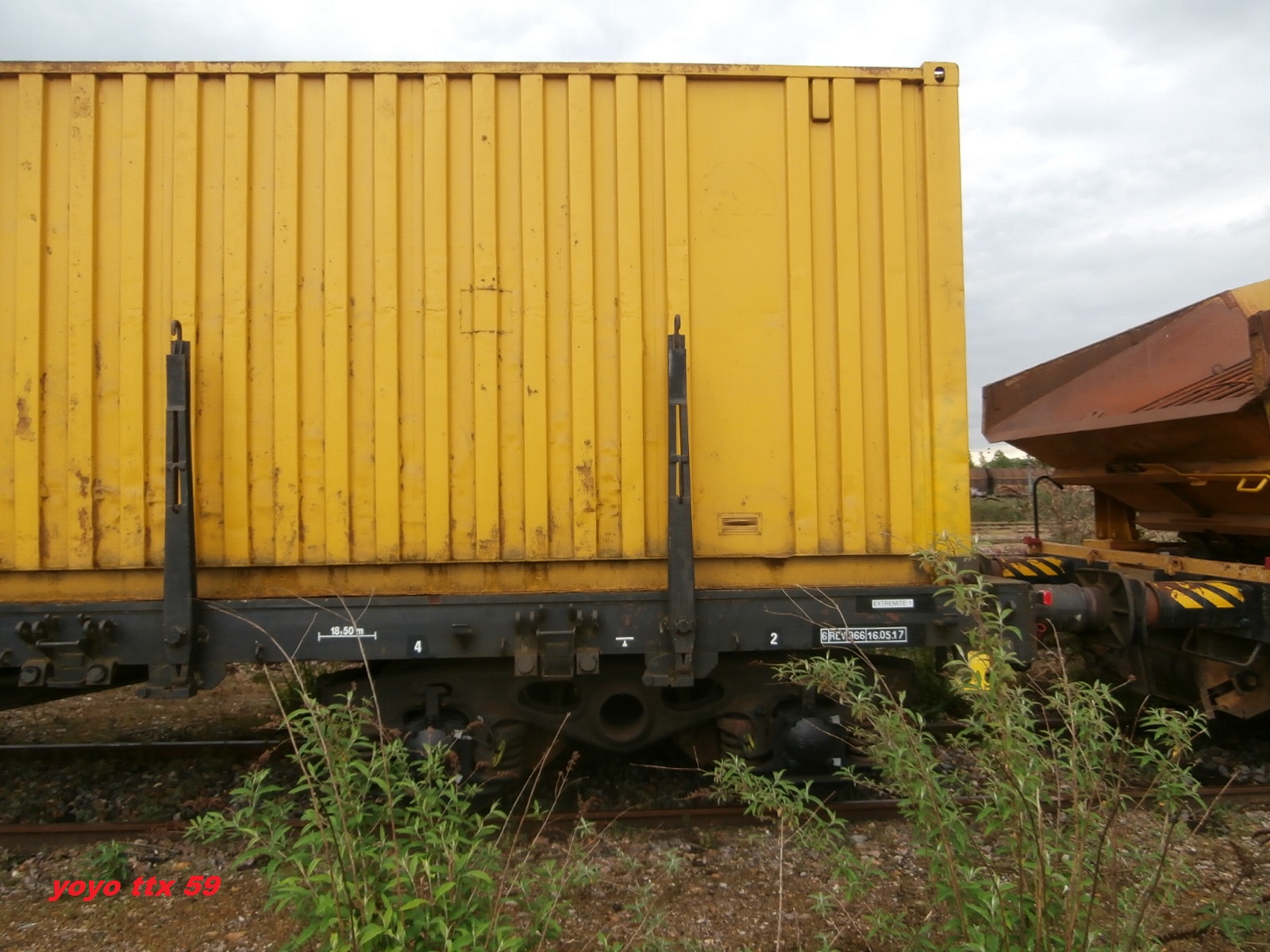un plat immatriculé "wagon de particulier", pratique courante chez TSO. A noter l'ancien logo TSO sur le container.