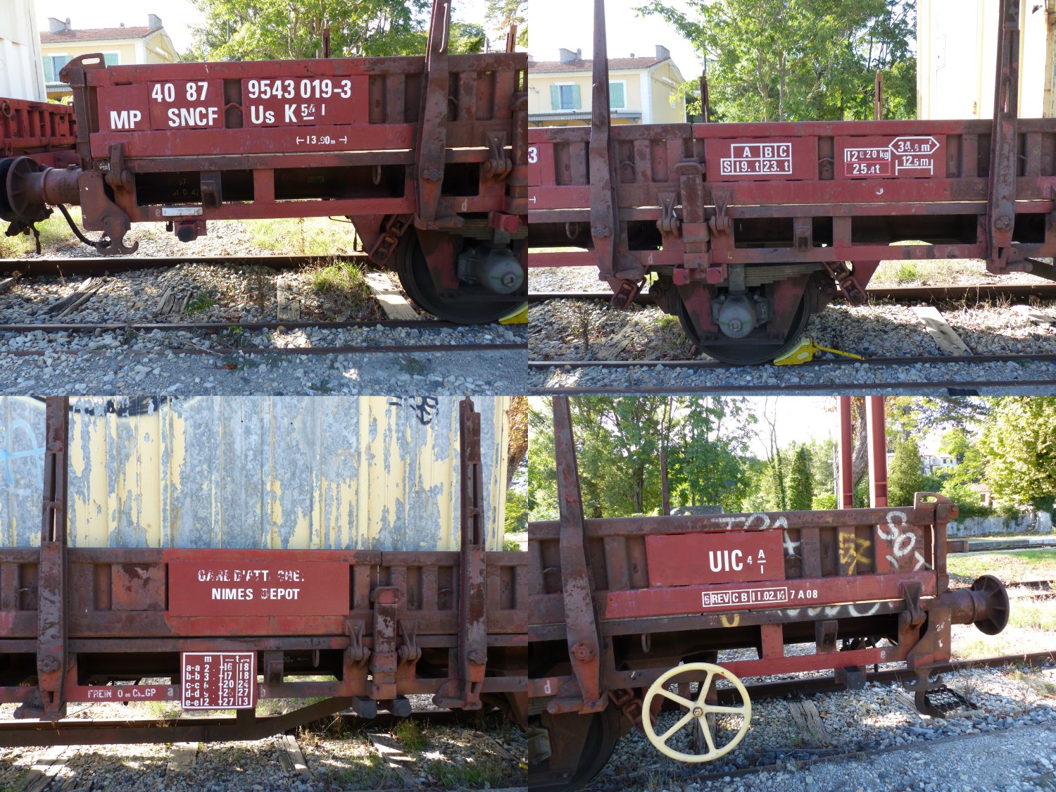 - wagon plat à ranchers avec conteneur amménagé 40 87 952 1 078-5 MP SNCF Us K 00 1