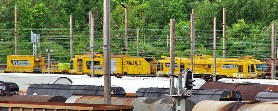 Train de fraisage de Vossloh 99 80 9427 004-3 D-ALPHA "Goliath" de STRABAG à Tergnier le 08-06-2019