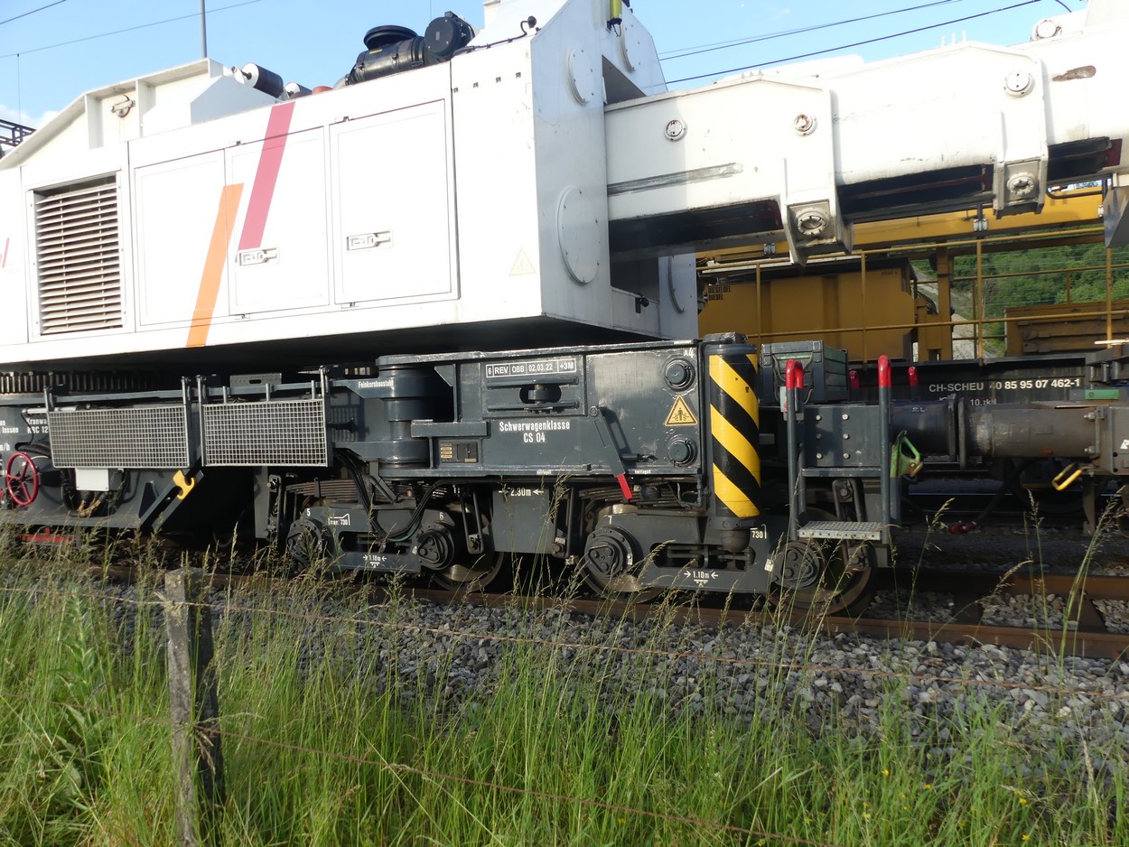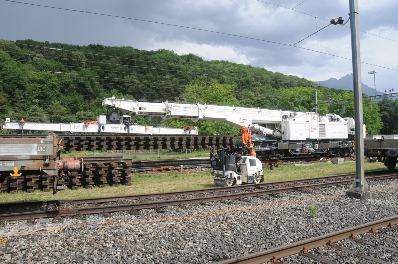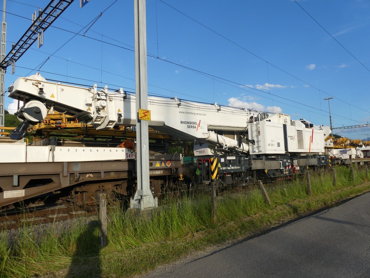 La grue Kirow KRC 1200-1 de Rhomberg Sersa Rail Group était à St.Triphon la semaine dernière. Photos le 26.05.2024.