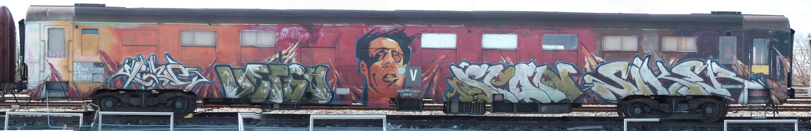 Photomontage des deux faces en juxtaposant plusieurs photos. Cette voiture est régulièrement engagée avec le train désherbeur de Toulouse.