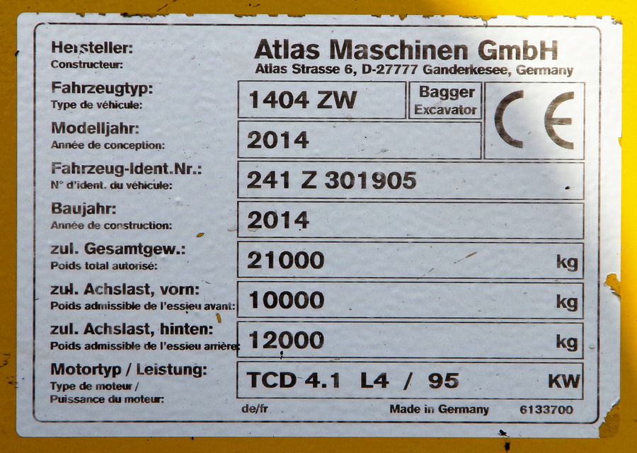 ATLAS 1404 ZW n°241Z301905 de 2014 - Agrément de travail DPI 14255 - 02-10-2019 de la société STMF