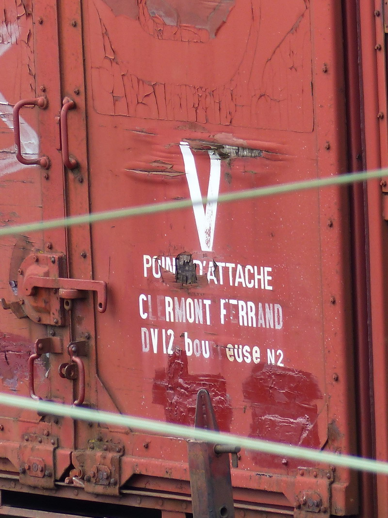 Voici le wagon couvert à essieux 40 87 959 0 900-6 Us G54 6 - SNCF-CF Point d'attache Clermont Ferrand DV12 bourreuse N°2