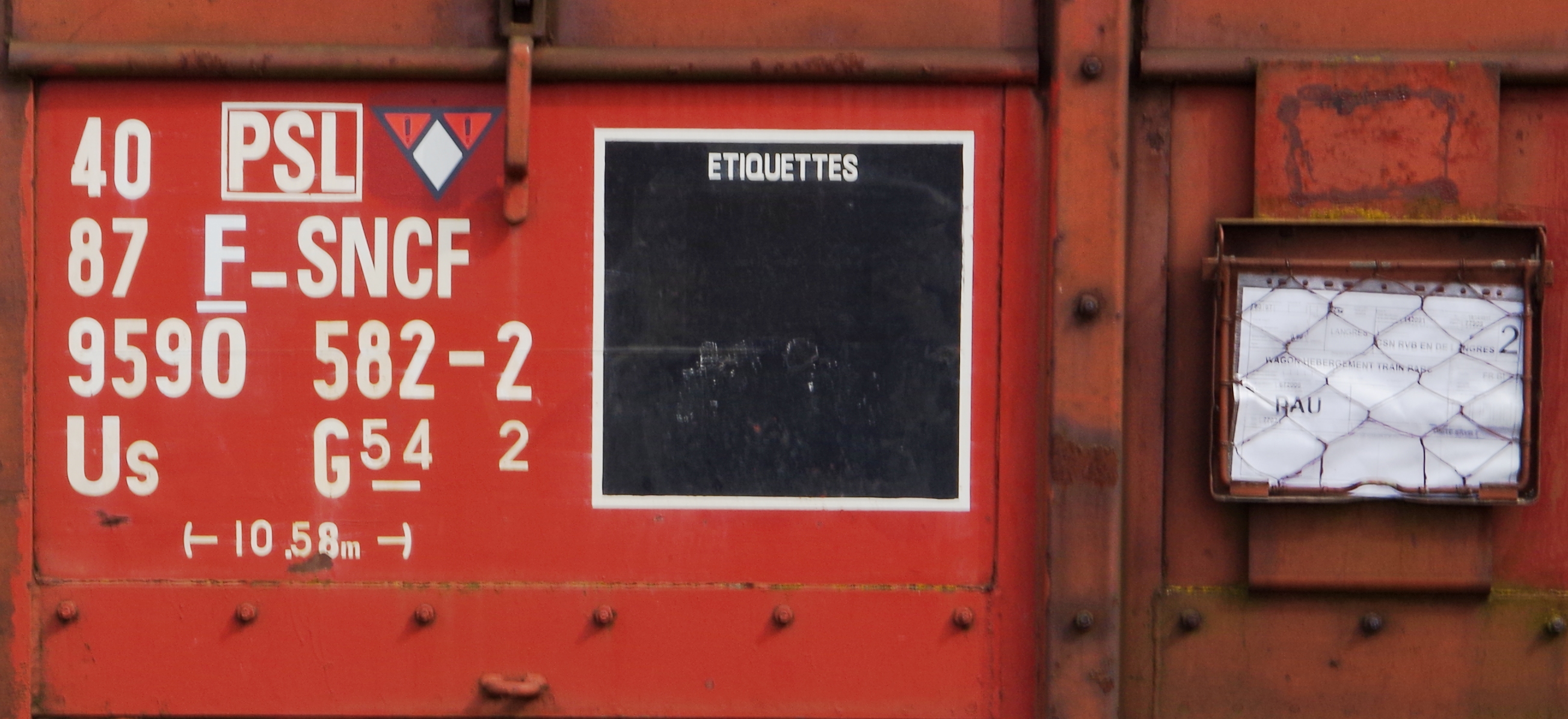 Voici le wagon couvert à essieux 40 87 959 0 582-2 Us G54 2 F SNCF-PSL - Région d'attache Paris St Lazare