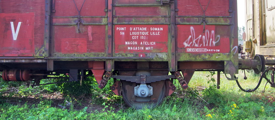 Le wagon couvert atelier magasin MRT 40 87 959 0 255-5 Us G54 2 F SNCF-LL Point d'attache Somain
