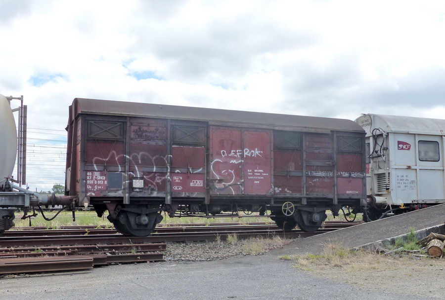 Voici le wagon couvert à essieux 40 87 959 0 013-8 Us G54 2 - SNCF-RO Point d'attache Caen - Elog National