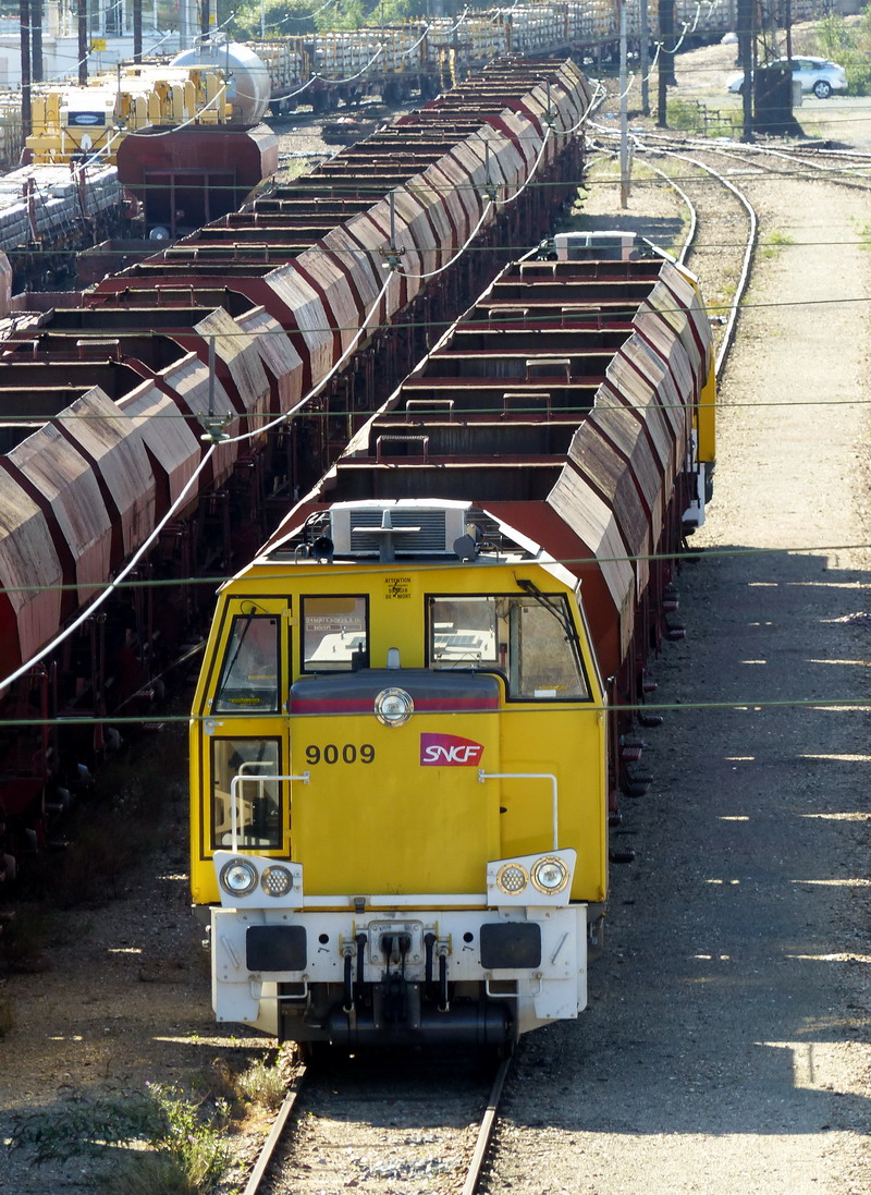 Voici le locotracteur Y 9009 en livrée Infra jaune avec la rame Nacelle PF2 le jeudi 06 mars 2014 à Saint Pierre des Corps