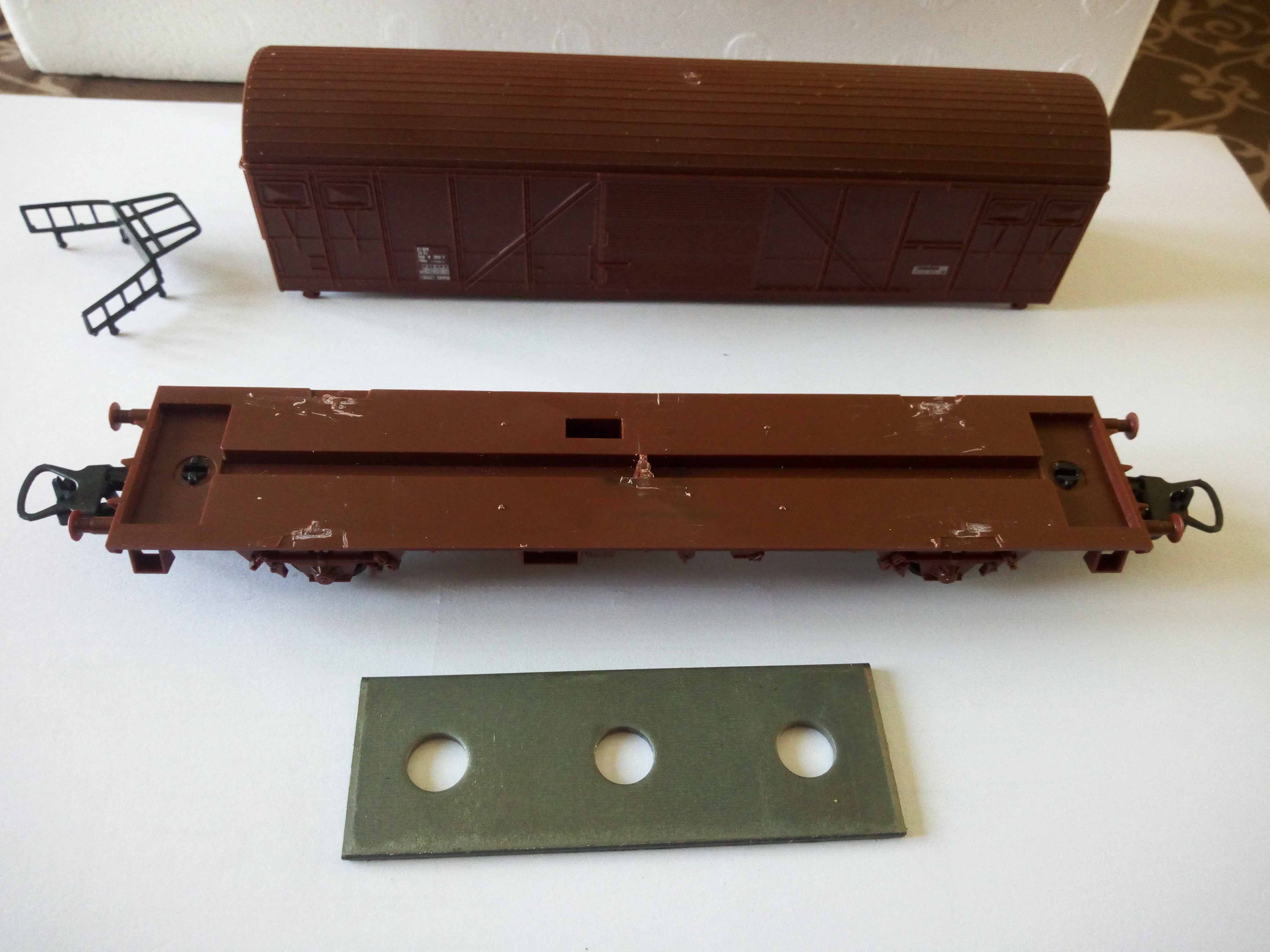 En regardant les cotes en HO, à quelques millimètres près, un châssis de vieux wagon Lima peut faire l'affaire.