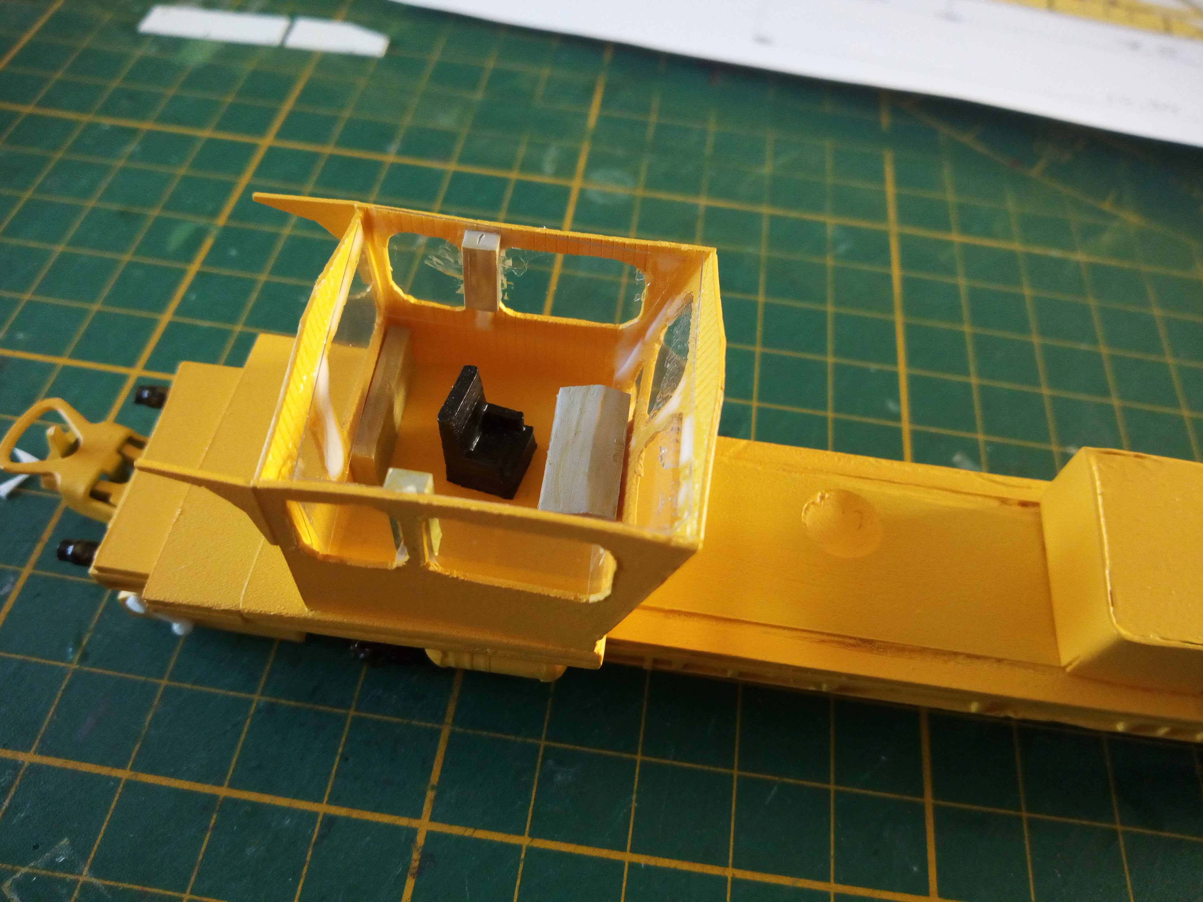 La suite des travaux, mise en peinture des pièces supplémentaires, pose des rambardes côté cabine et pose des nouvelles pièces