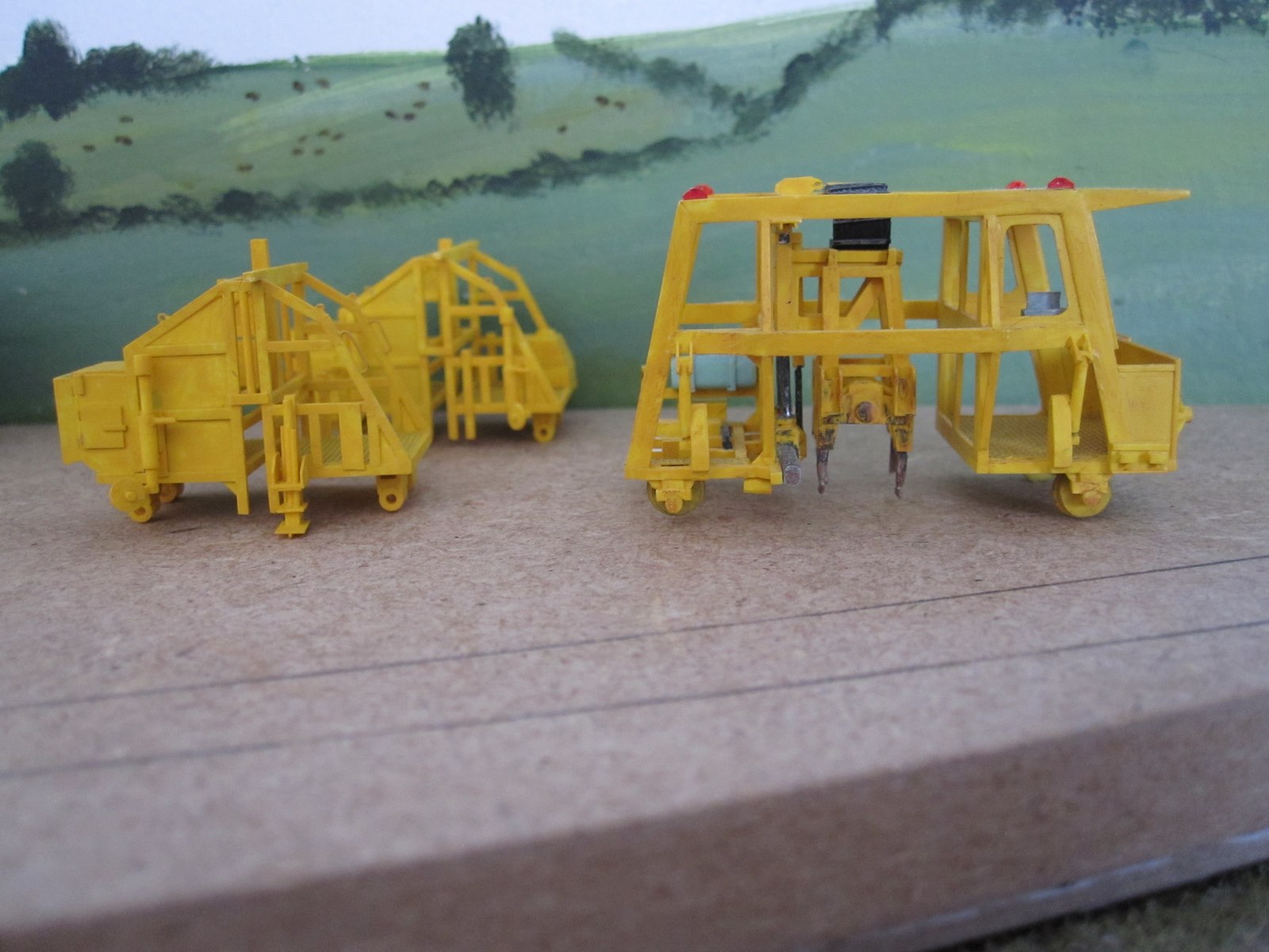 Le travail avance tout doucement. Les 2 premières MRT ont été peintes. Il s'agit de la 84095-183 déjà vue ci-dessus et de la 81030-124 (non présente sur le forum). Elles seront présentées dans un état de délabrement plus ou moins avancé, en attente de ferraillage. La plupart des pièces de ces deux MRT sont réalisées. Il reste cependant le toit à faire, et ce ne sera pas une mince affaire pour la 124 car on ne verra que son armature, la bâche ayant été enlevée. Ce sera de la dentelle à cette échelle :pt1cable: Viendra aussi le temps de la patine, obligatoire Daccord07