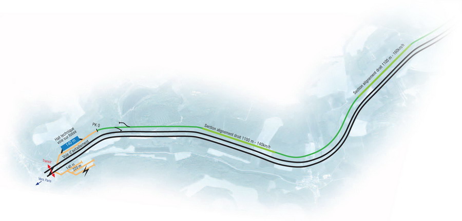 ligne de 12km, apte à 160km/h, et est raccordé au Réseau Ferré National (RFN)