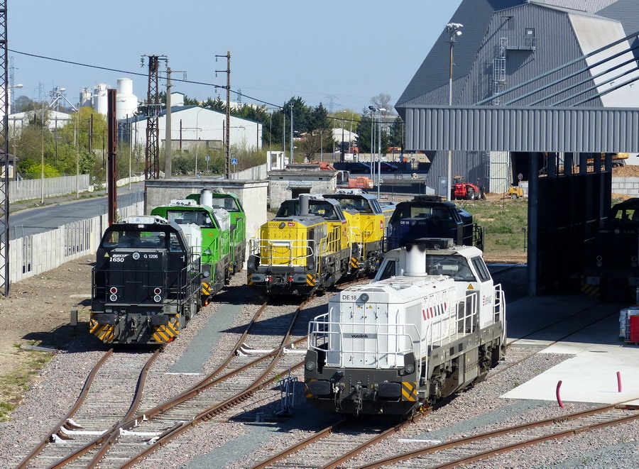 Le 9.12.17, des locomotives de l'ancienne usine Vossloh à Kiel-Friedrichsort ont été transféré avec un TM de cinq locomotives Diesel-électriques