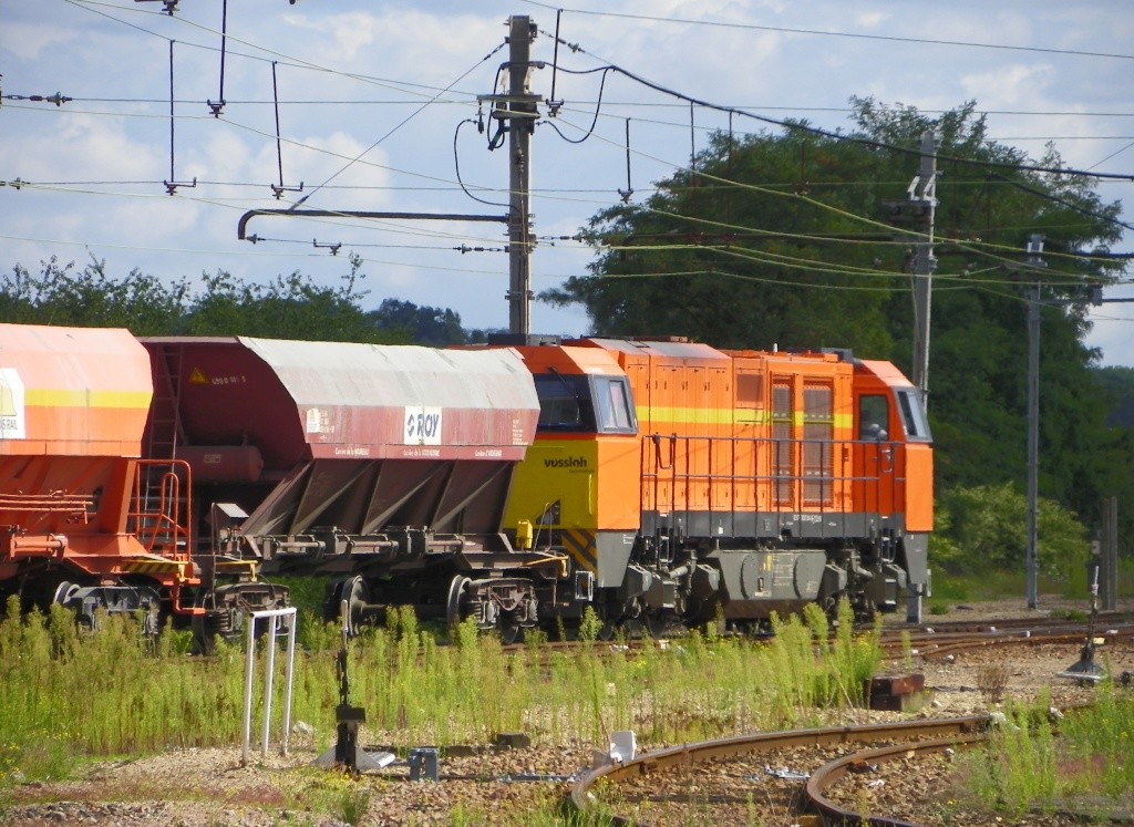 J'ai surpris le 09 septembre dernier sur le faiseau de la cour marchandises de la gare de Melun, cette locomotive G2000 entrain de manoeuvrer une rame de wagons tremie type Fanps de Colas Rail.