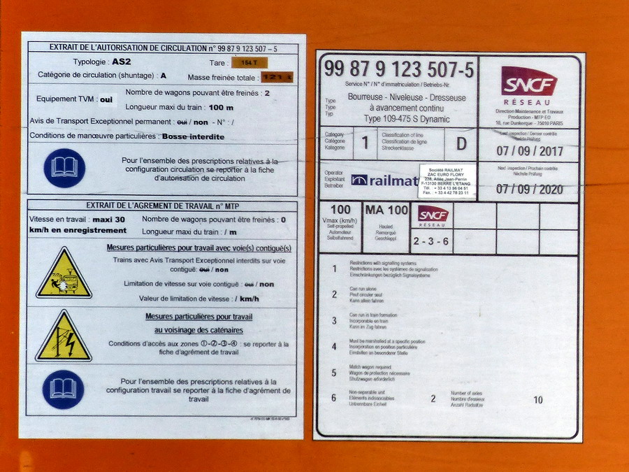 109 475S Dynamic - 99 87 9 123 507 5 - RAILMAT site de l'Infrapole LGV Atlantique de SPDC le 31-03-2019
