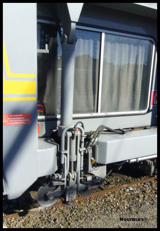 C'est le bras pour la 3ème file de rail. Ca sert à bourrer les appareils, pour soulever la voie déviée en même temps qu'on bourre la voie direct, très utile pour éviter de créer un gauche dans la voie dévié tout en bourrant la voie direct et ça permet également de bien caler la voie dévié depuis la voie direct avec le déport des groupes de bourrage.
