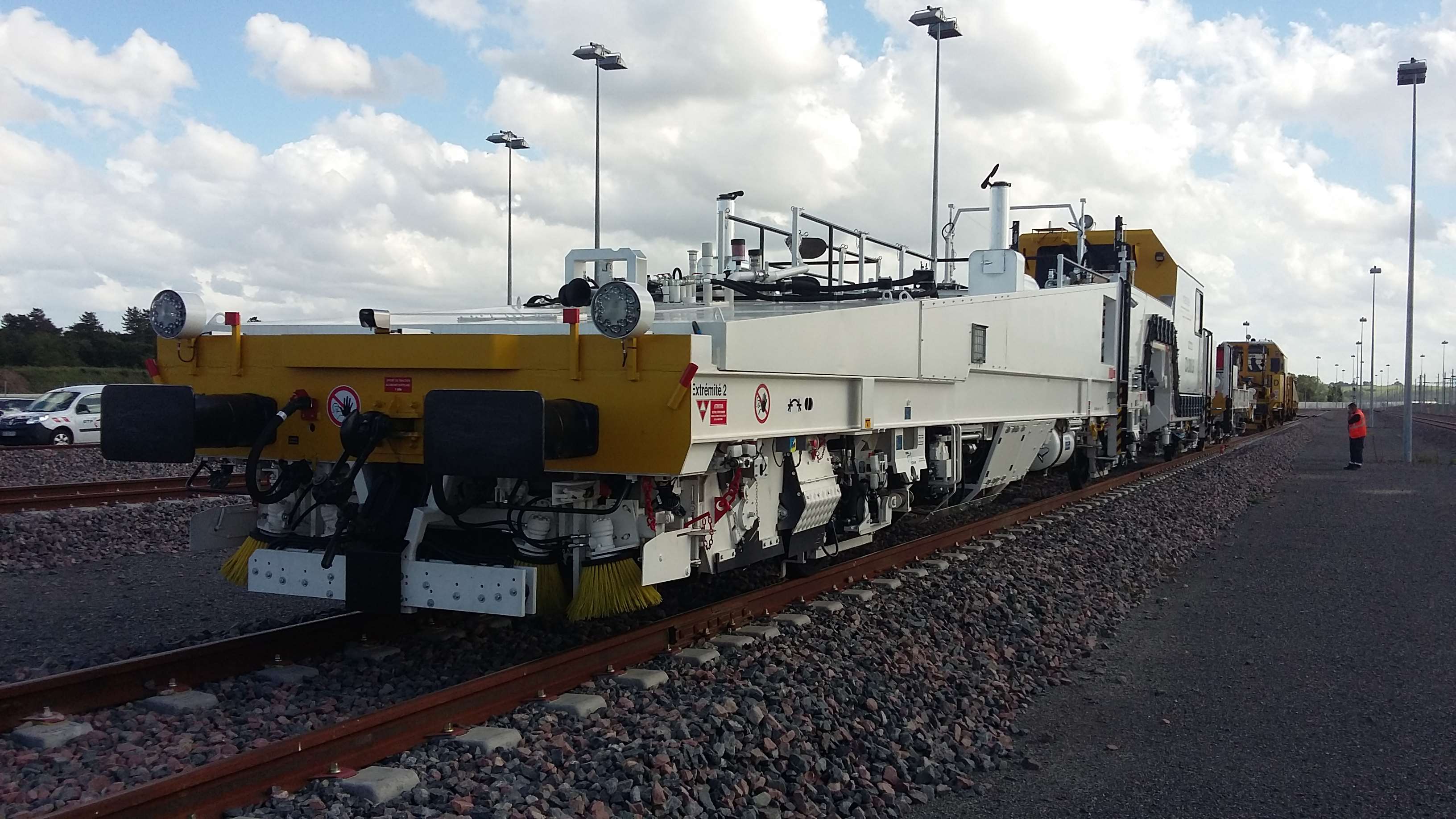 La bourreuse hier sur la base de maintenance de Maillé-Nouâtre. Elle est attelée au wagon stabilisateur VGS04 de MESEA.