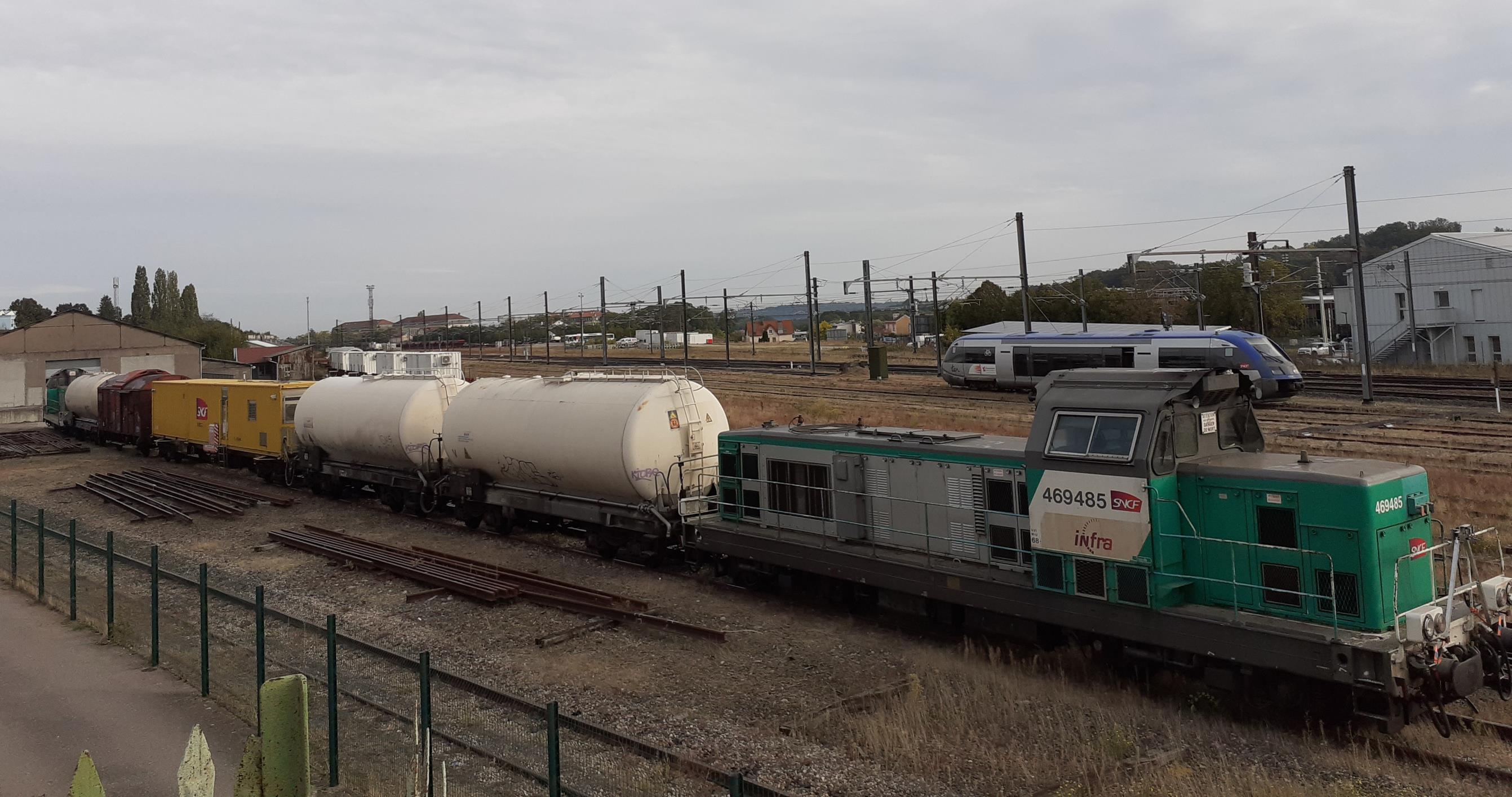 Voici la machine 469485 Infra avec le logo en livrée Fret (ex 66485 mise en service le 24-12-1970)