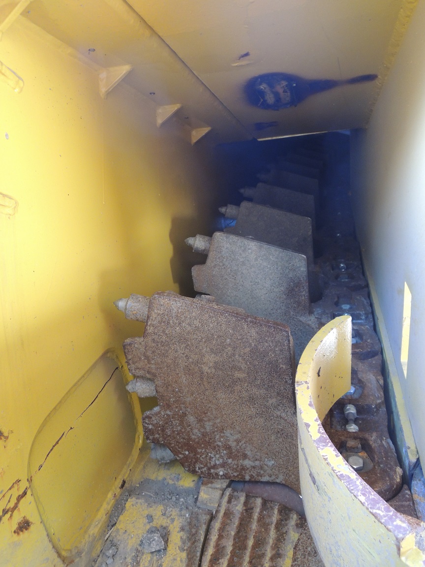 Le couloir de la dégarnisseuse c'est par la que les déblais sont remontés vers le crible