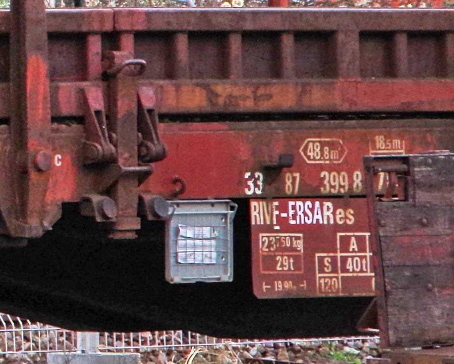 wagon plat porte flèche 33 87 3998 7xxxx Res RIV F-ERSA à Bécon-les-Bruyères (92) le 03-02-2019