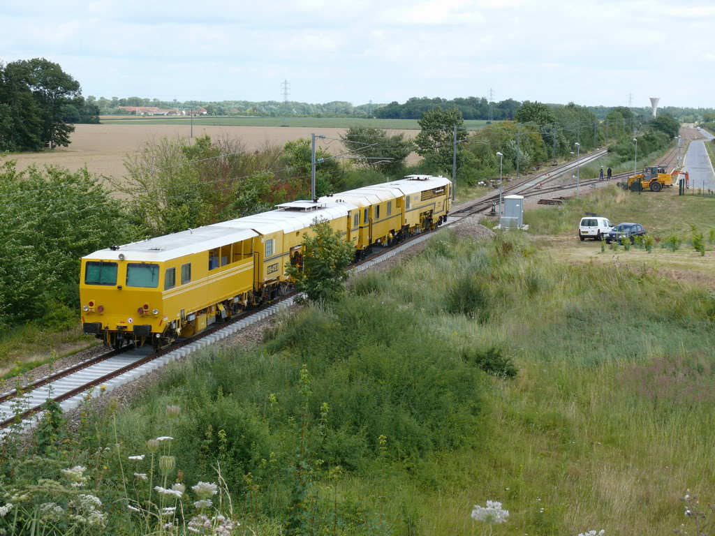 Concernant le pourquoi de la présence de la machine je ne pense pas que ca soit la base LGV de Tournan vu qu'elle a pas l'air équipée de la TVM (pas de capteurs à l'avant et à l'arrière de la machine).