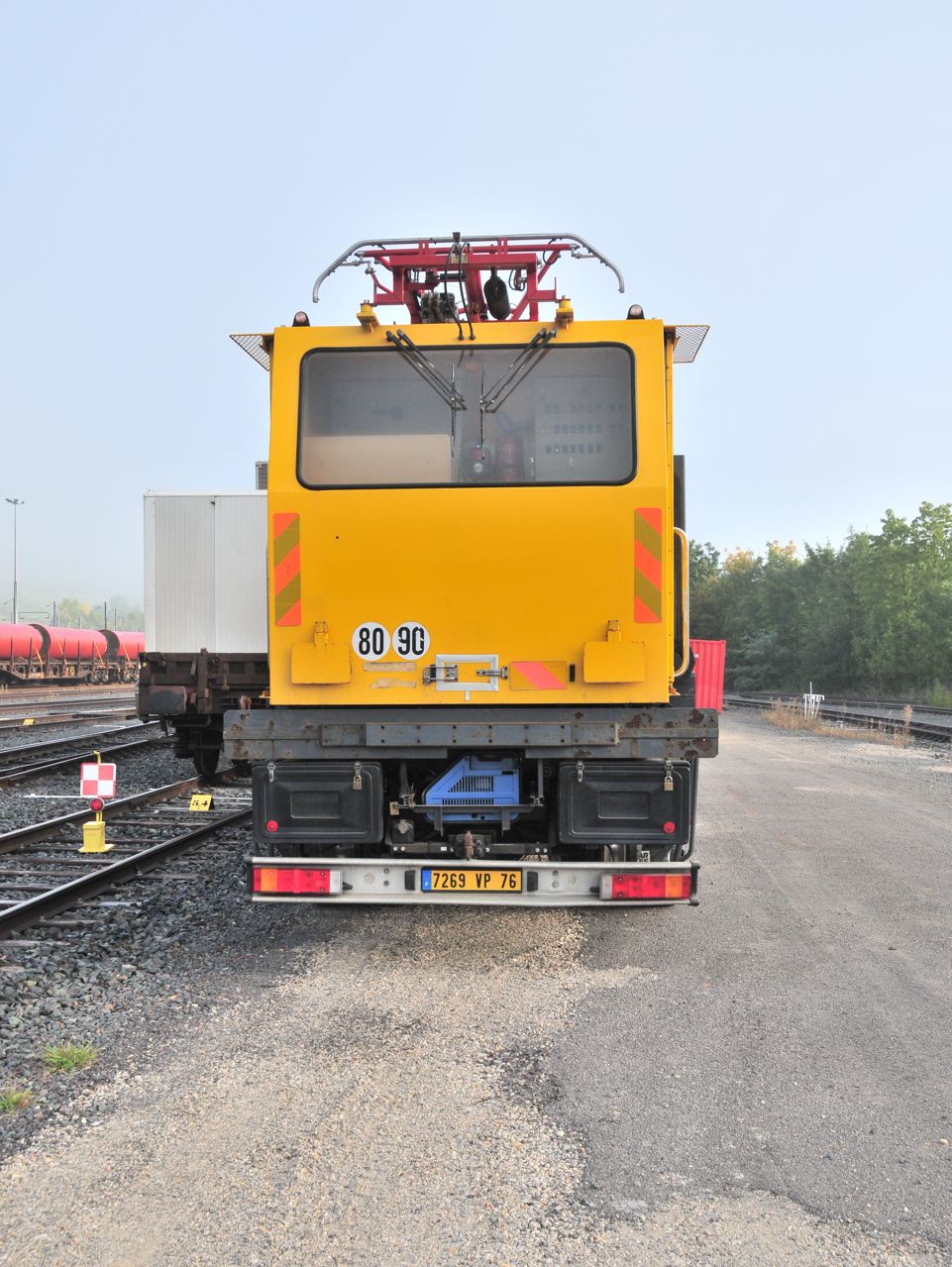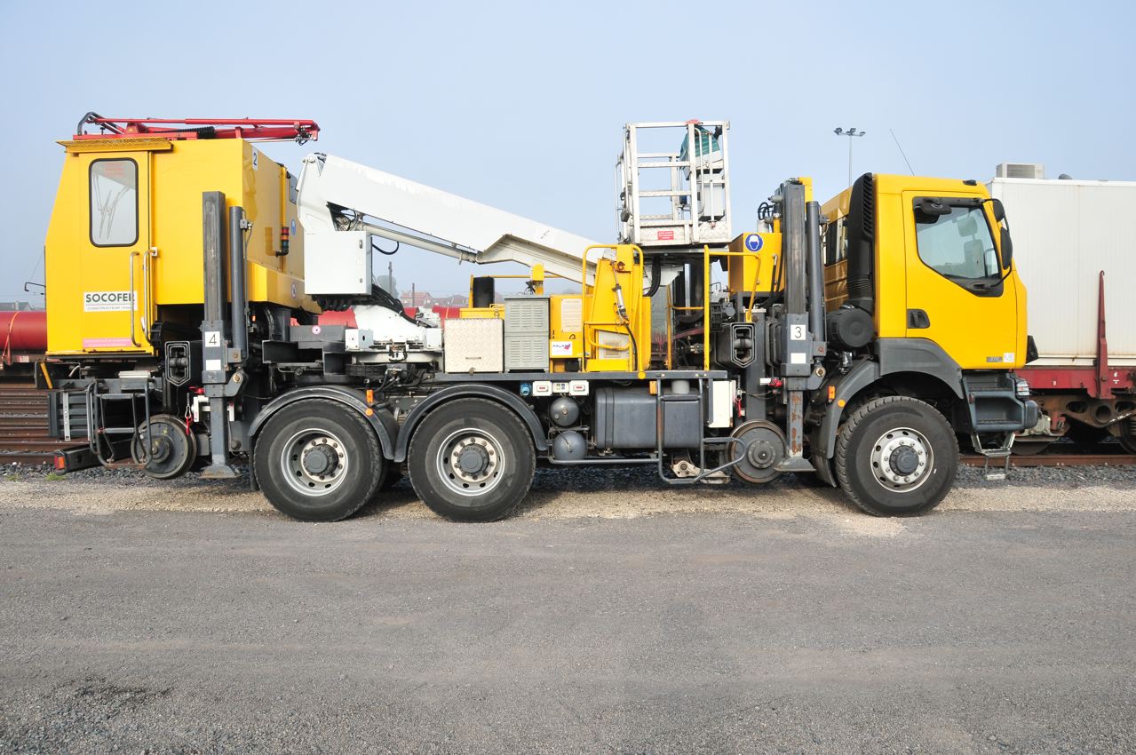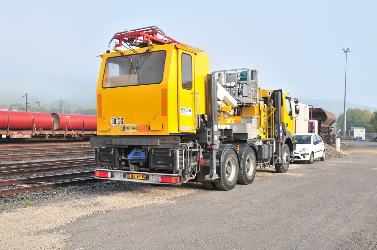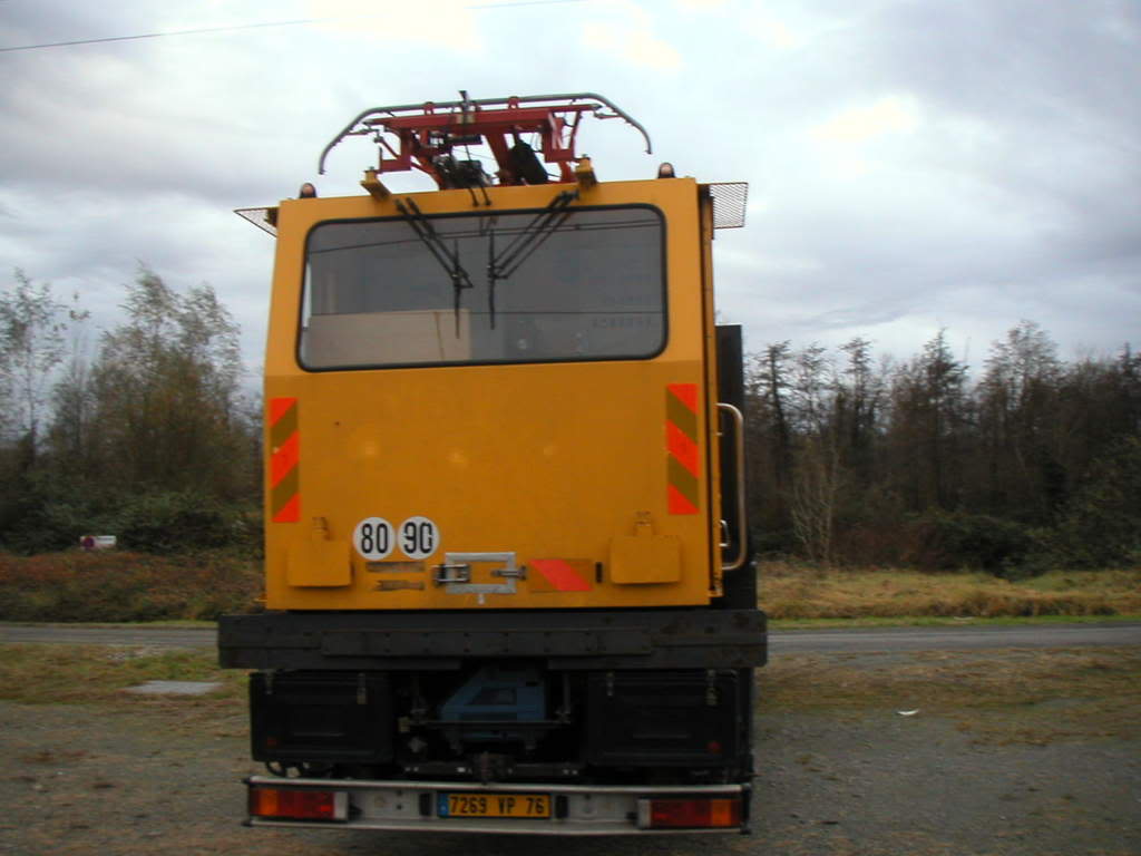 Voici un "couteau Suisse" que je n'arrive pas a classer. Ce camion est vraiment typique .On voit bien ses 4 béquilles qui lui permette sa mise sur rail par déplacement latéral.