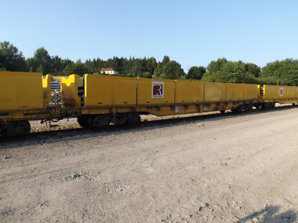 Voici un des wagons de transport de traverses de Transalp Renouvellement.