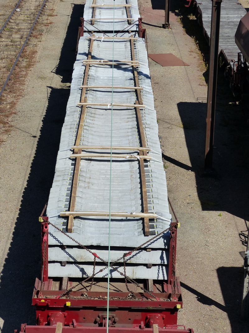 Voici le wagon plat à boggies 80 87 977 0 862-1 Uas R09 3 - F SNCF-PSL (avec le wagon 653-4)