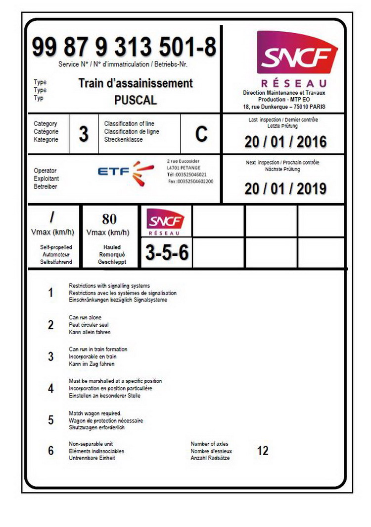 Voici l'Agréments de travail Train de substitution - Puscal IV - 99 87 9 313 501-8 - ETF