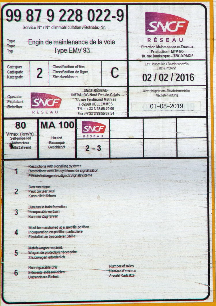 Voici une bourreuse EMV 93 SNCF 9.308, je l'ai vu à Lumes.