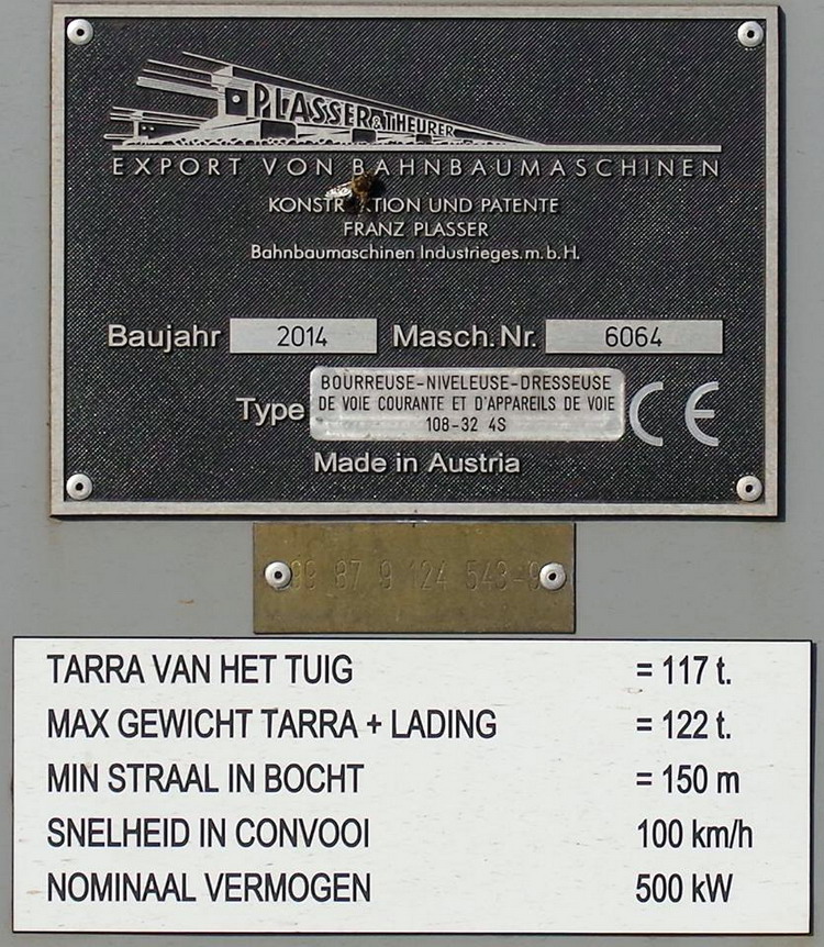Bourreuse d'appareils 108-32/4S Plasser & Theurer n°6064 de 2014 - Agrément de travail 27-03-2014 / 2017