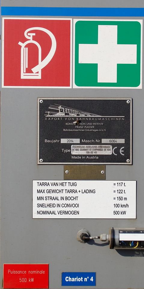 Bourreuse d'appareils 108-32/4S Plasser & Theurer n°6064 de 2014 - Agrément de travail 27-03-2014 / 2017