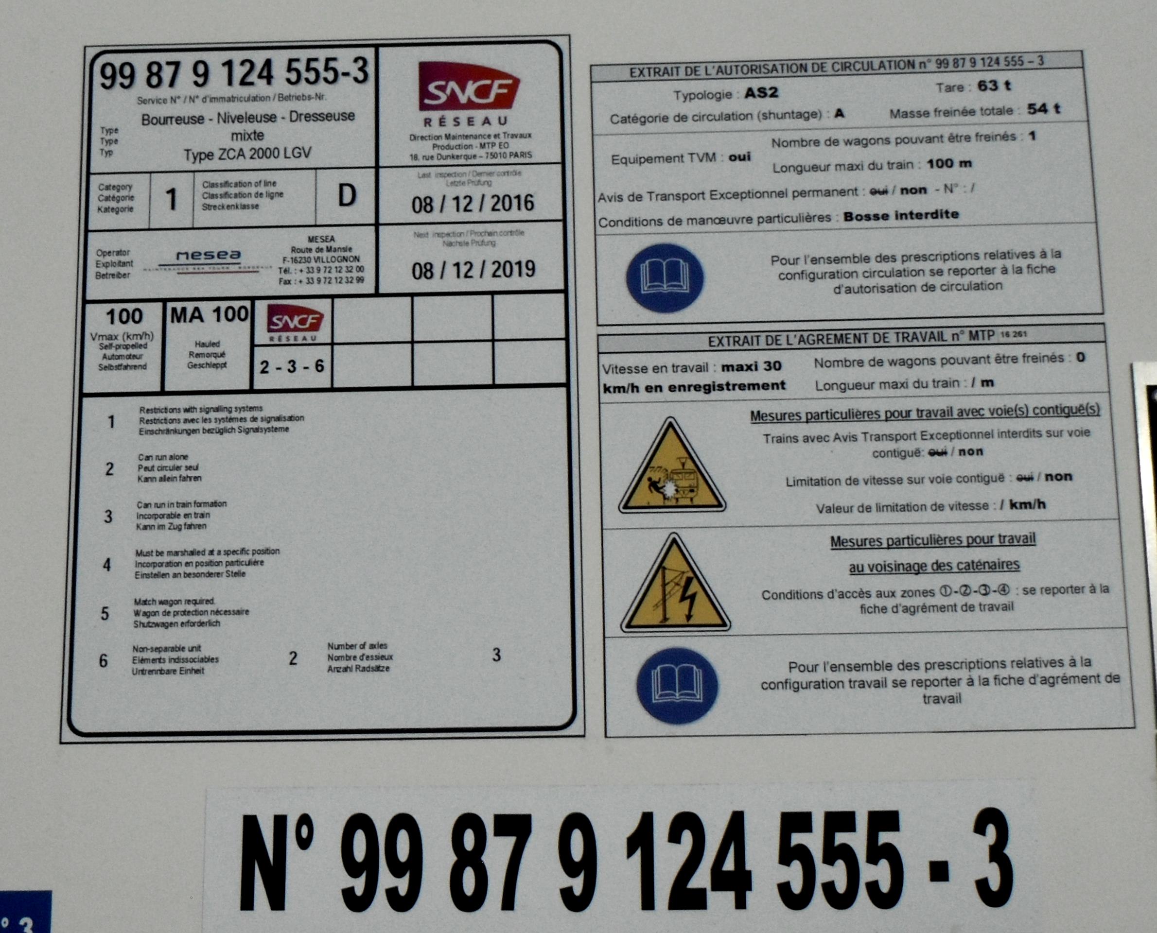 Les photos ont été prises hier sur la base de maintenance de Villognon. Dans le poste suivant, vous verrez l'agrément de la bourreuse. j'ai zappé celui du wagon, faudra que j'y retourne !