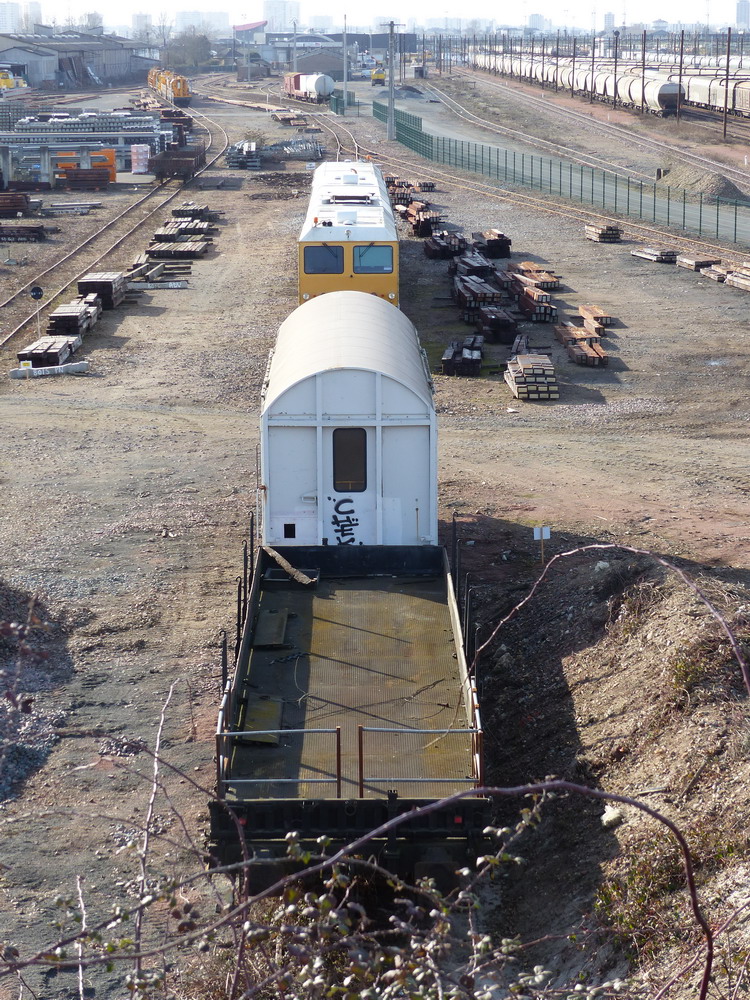 Voici le couvert à essieux fourgon V - 40 87 959 2 931-9 Us G90 6 - SNCF-PRG avec le locotracteur Y 40 8265 Infra en livrée Fret