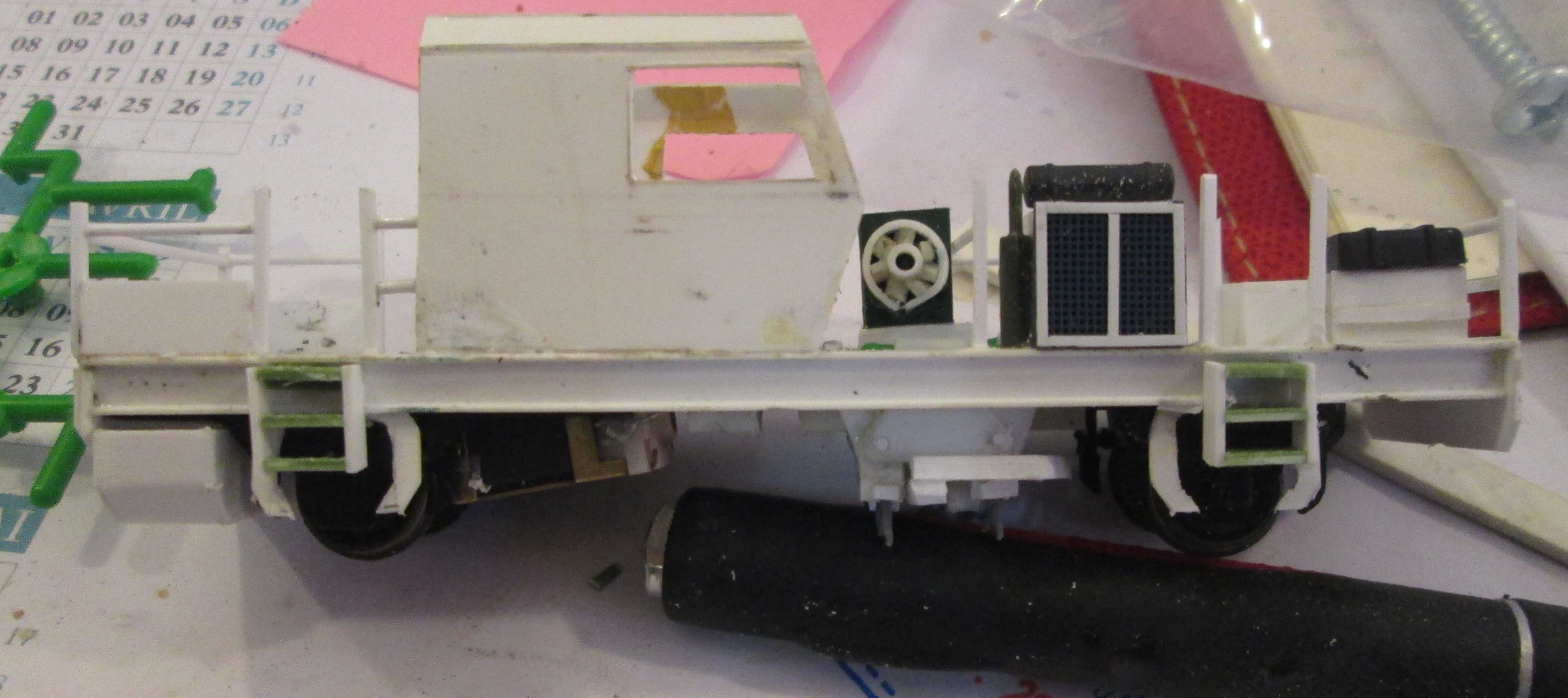 .Vu la taille du modèle , voici quelques endroits pour loger du lest discrètement :- Dans le réservoir arrière sous la machine - Dans les réservoirs d'air sous la machine - dans le bloc moteur devant la cabine a droite- Dans le réservoir du groupe hydraulique a l'avant gauche - Sous la cabine avec un plancher double fond .Pour ce dernier , j'utilise de la feuille de plomb de bouteille de vin ( avantage d'une épaisseur très fine ) .Avec une telle répartition du lest , le captage du courant et l'adhérence ne devraient pas posés de problèmes .Au passage , j'utilise ce procédé pour mes modèles et cela fonctionne plutôt bien