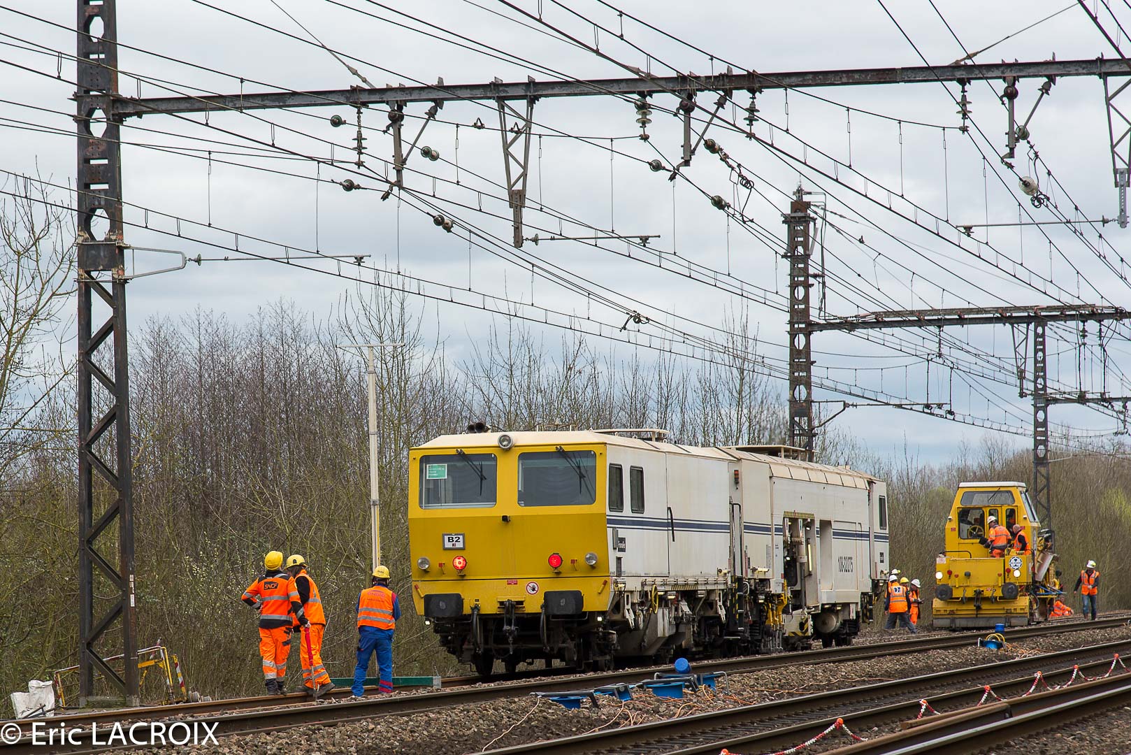 - Bourreuse Framaer 108 32/275 n° 3496 - 99 87 9 122 527-4 - Delcourt Ferroviaire sur le RVB voie 1 bis à Villeneuve la Guyard le 20 mars 2017.