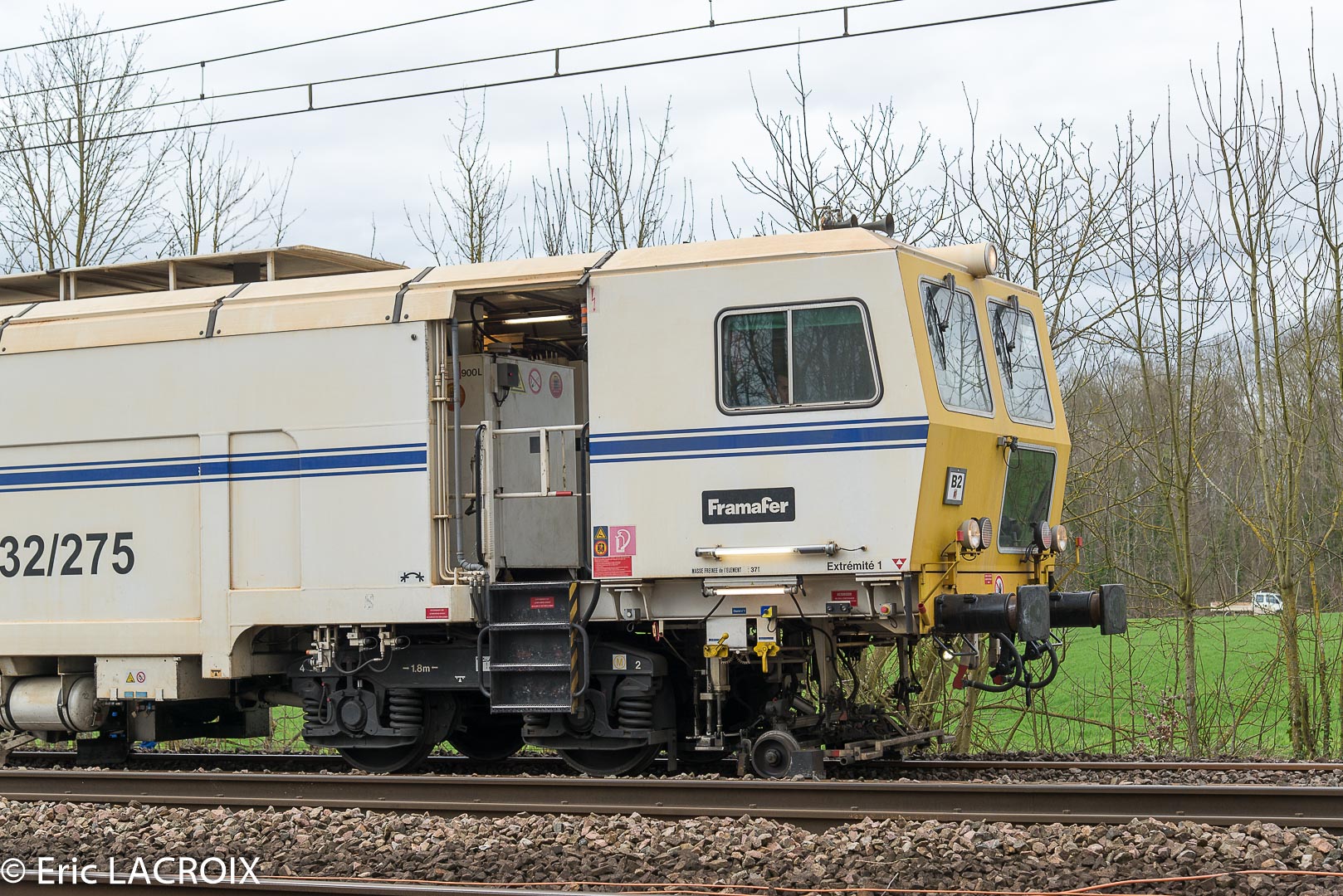 Bourreuse Framaer 108 32/275 n° 3496 - 99 87 9 122 527-4 - Delcourt Ferroviaire sur le RVB voie 1 bis à Villeneuve la Guyard le 20 mars 2017.