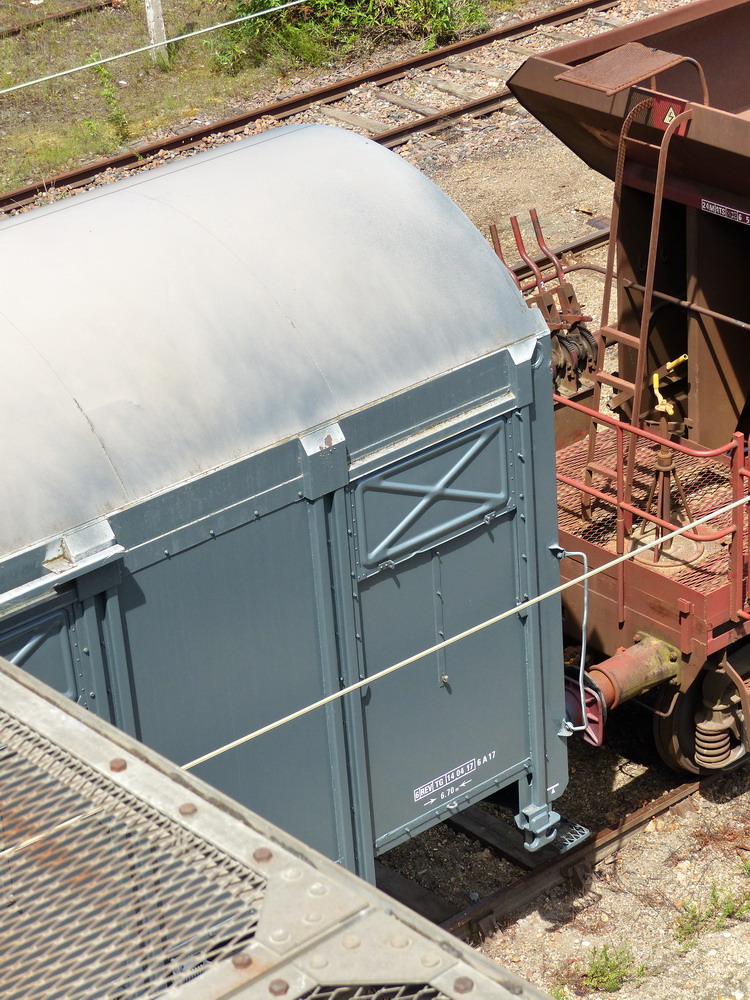 Voici le couvert à essieux Fourgon V - 40 87 959 2 978-0 Us G90 6 SNCF-TR gare d'attache St Pierre des Corps en queue de rame Infra à Saint Pierre des Corps le mardi 25 mars 2014