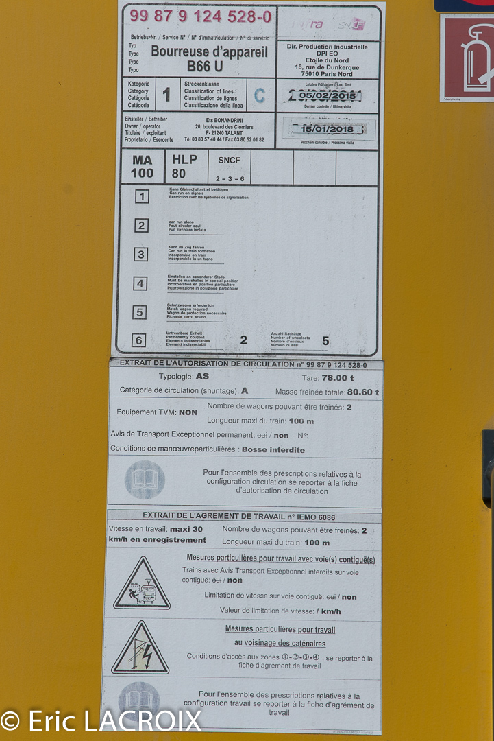 Cette bourreuse rentre en atelier pour rénovation, sortie prévue en août ( merci au conducteur pour ces infos).