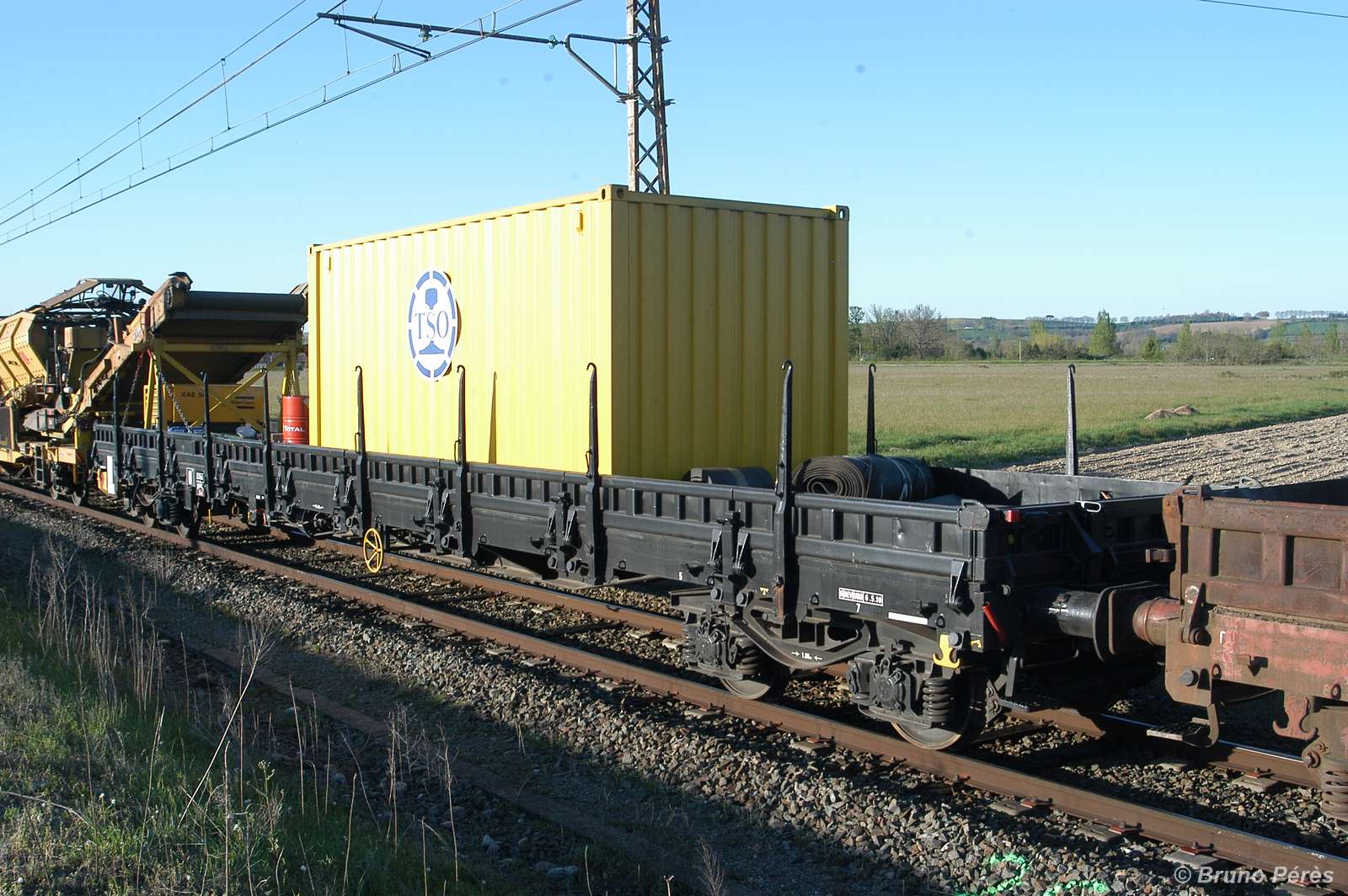 Voici un morceau du wagon plat avec chevalet avec le VAD 85 PSE n°254 de TSO à Saint Pierre des Corps le vendredi 26-09-2014