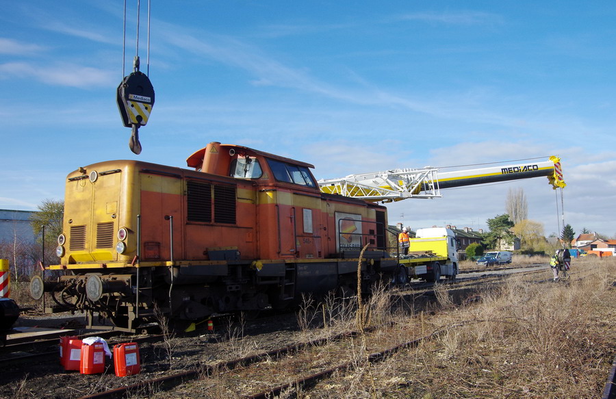 - une grue mobile LIEBHERR LTM 1100-4 de 100T pour le levage de la machine à Chaulnes le 06-03-2018