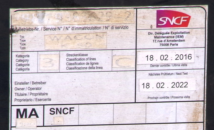 Ce wagon qui a changé d'immatriculation 43 87 3 418 001-3. Photo à suivre.