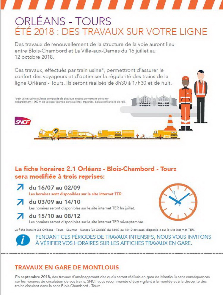 Voici un nouveau sujet sur le renouvellement complet sur la voie 1 entre Blois et La-Ville-aux-Dames entre le 9 juillet et le 31 octobre 2018
