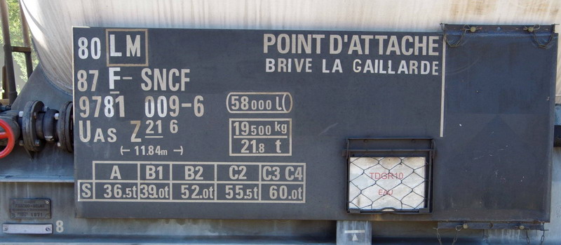 wagon citerne 80 87 978 1 085-6 Uas Z21 6 F SNCF-BD point d'attache Périgueux Chamiers