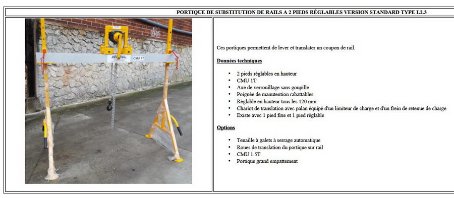 des Portiques de substitution de rails à 2 pieds réglables Mecarail à Rogny (02) le 27-07-2018