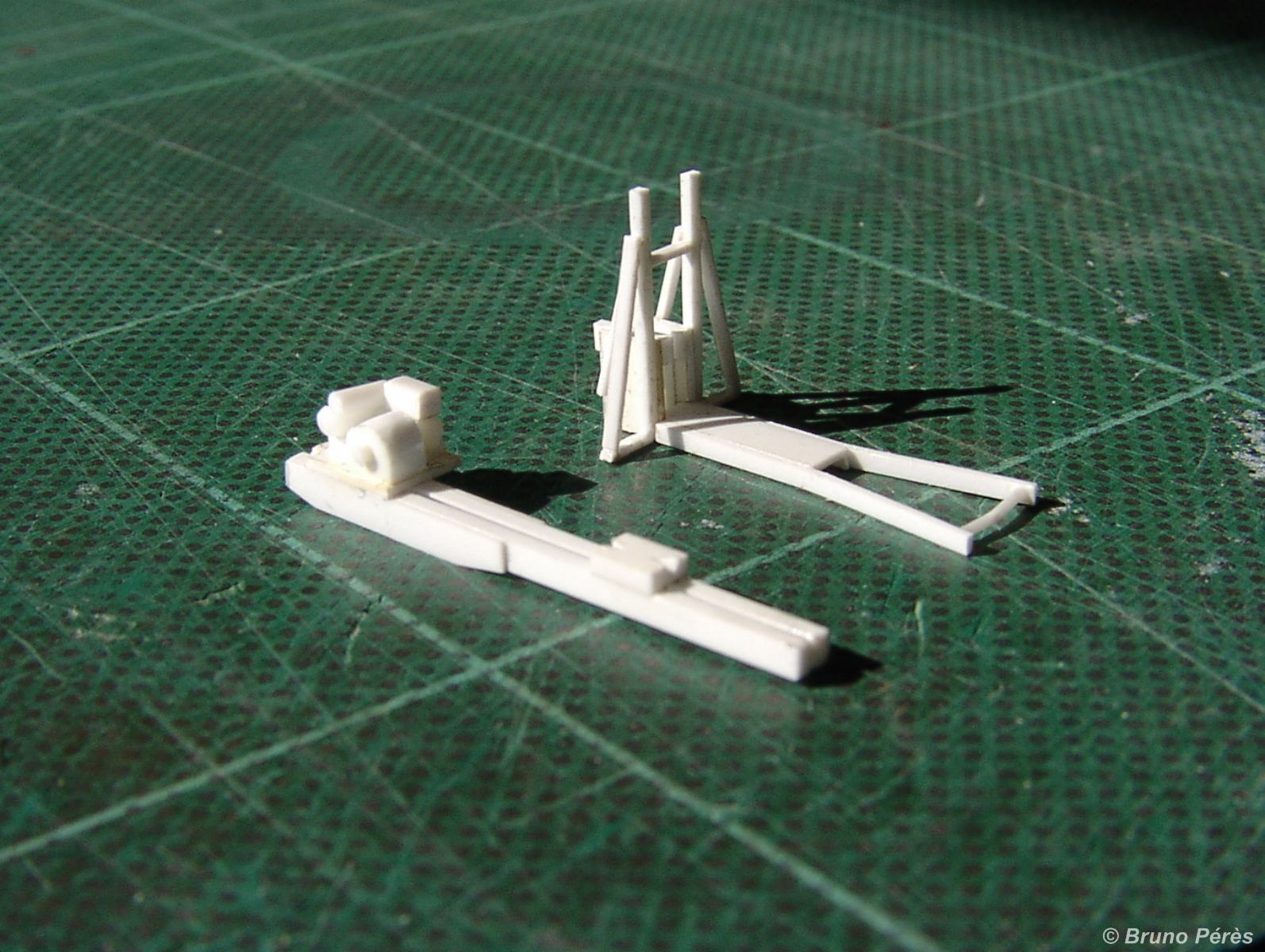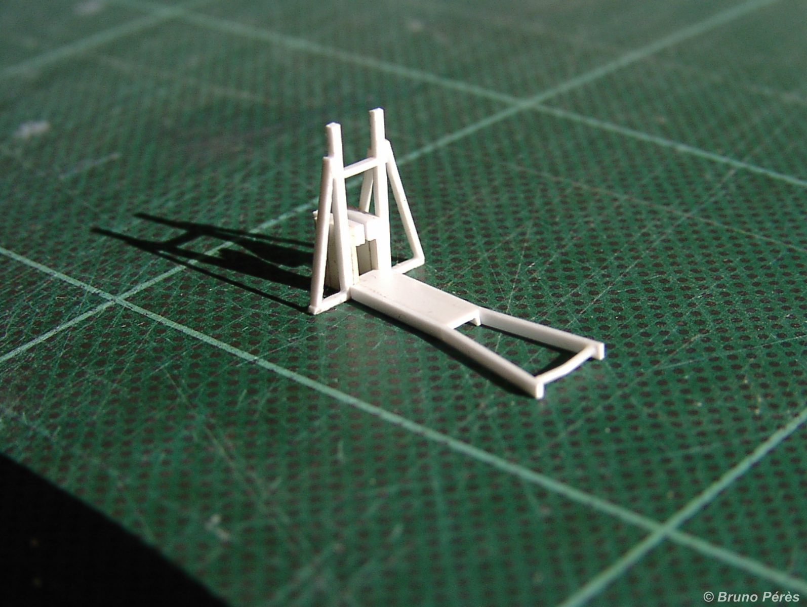 Je suis amateur et défenseur du moulage, bien que je ne l'ai utilisé que peu. La différence entre un pro et un amateur non équipé fait qu'un moulage est bon ou moins bon, voire mauvais. Et je ne me sens pas capable de mouler correctement ces petites pièces. Je me résous donc à construire ces portiques en plasticarte ... mais une fois le prototype terminé, je les ferai en série avec découpe des pièces avec le Chopper II de NWSL ;)