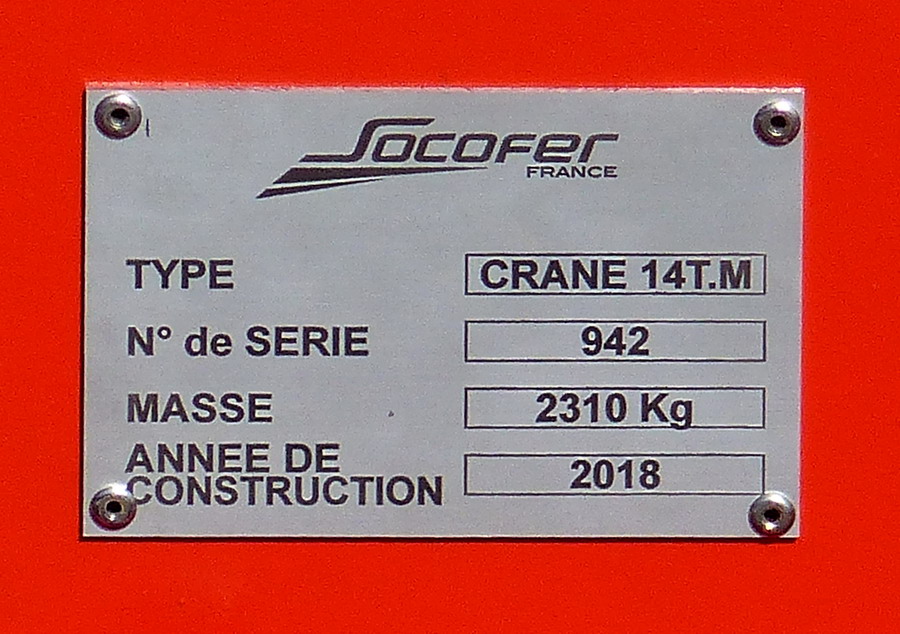 avec une grue de type CRANE de 14 T.M n° de série 942 - 2018 et d'une Masse de 2310 kg