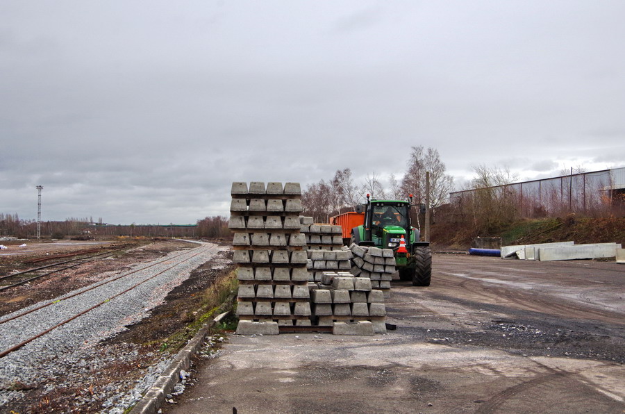 Traverses bi-blocs en béton armé sur la base de travaux arrière à Longueau le 07-12-2018