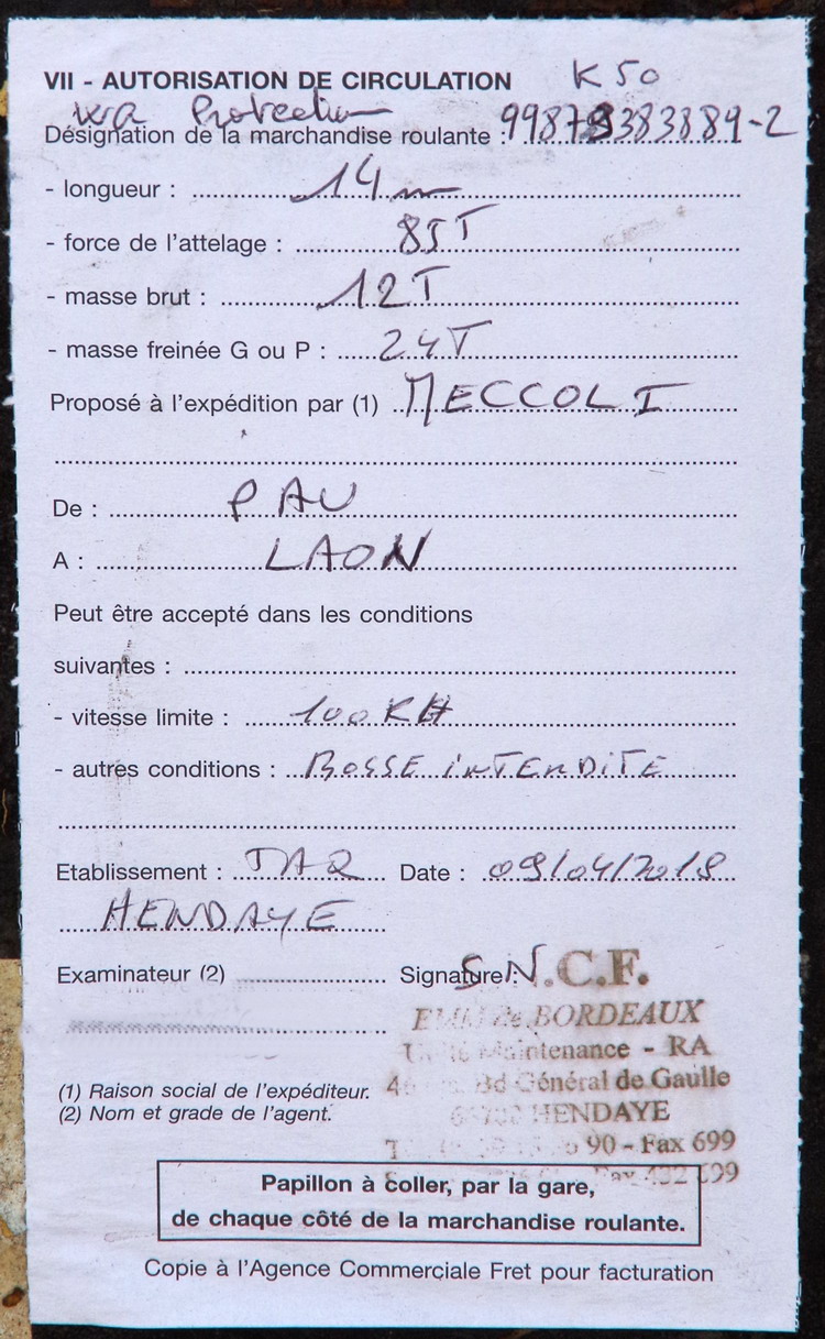 Voici le K50 - 99 87 9 383 889-2 - Meccoli, qui accompagnait le VAD 140 - 99 87 9 352 571-3 ce jour la