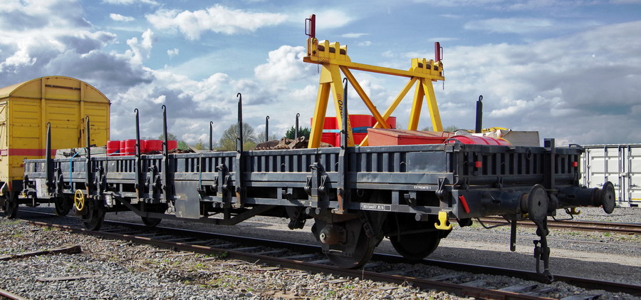 99 87 938 3 889-2 K50 Wagon protecteur Decauville 1964 dans une rame complète à Tours-St Genouph le 05/02/2011