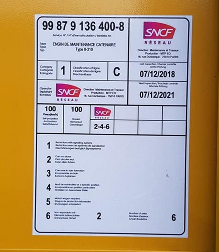 Voici l'engin de maintenance caténaire de type 8.310 - 99 87 9 136 400-3 SNCF Réseau